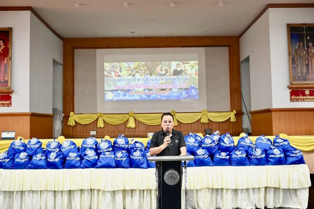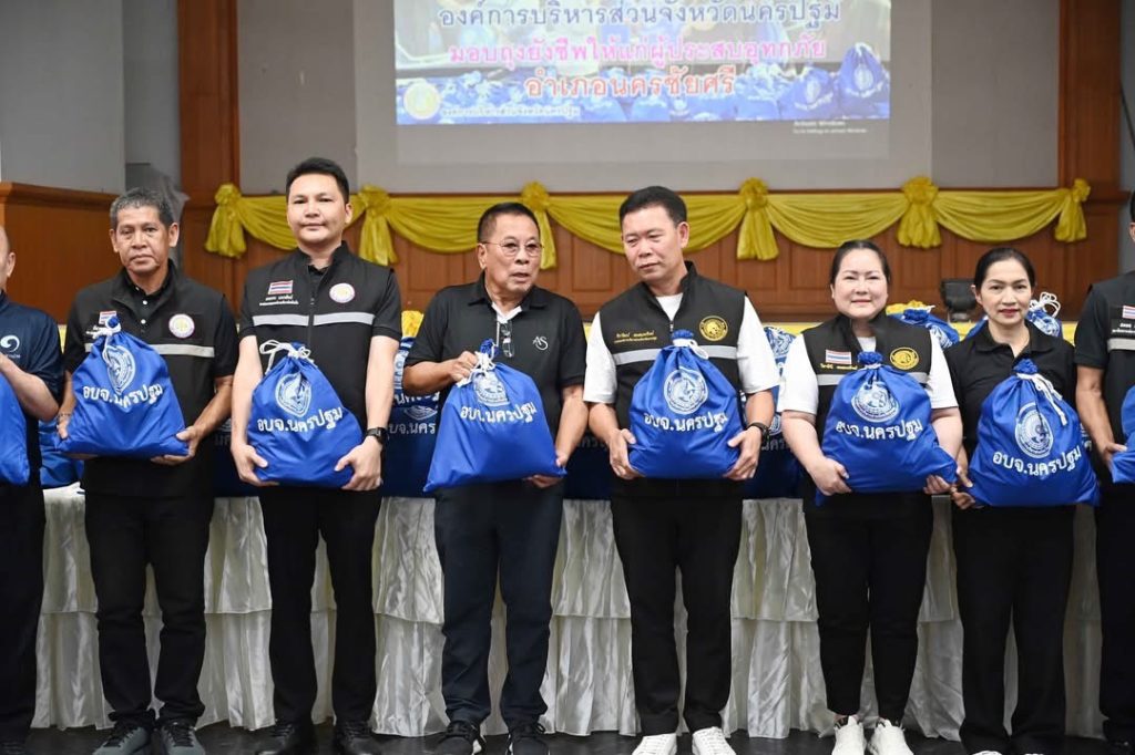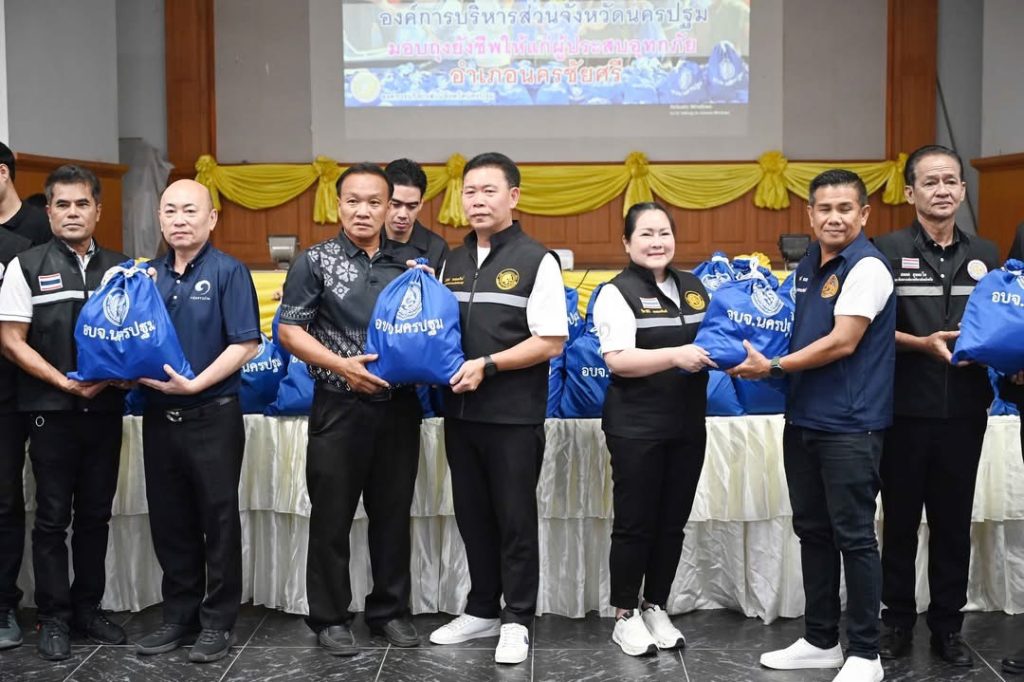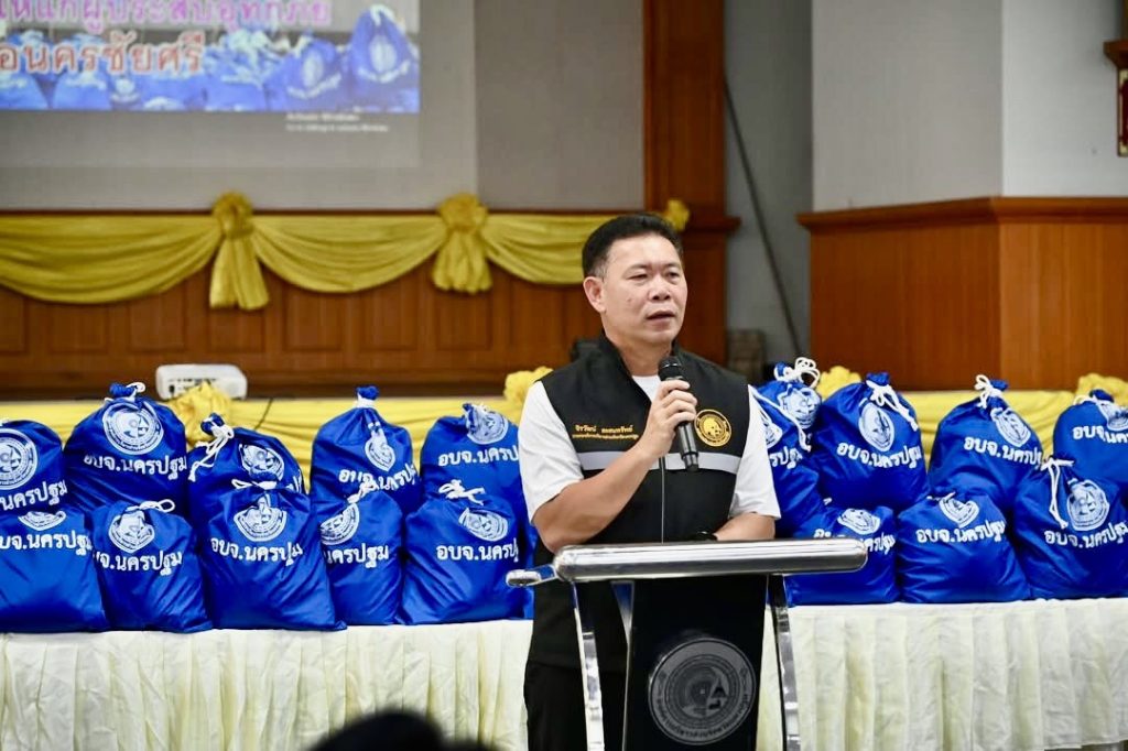 นายก อบจ. นครปฐมมอบถุงยังชีพให้แก่ประชาชนที่ประสบเหตุอุทกภัยน้ำท่วมในเขตนครชัยศรี
