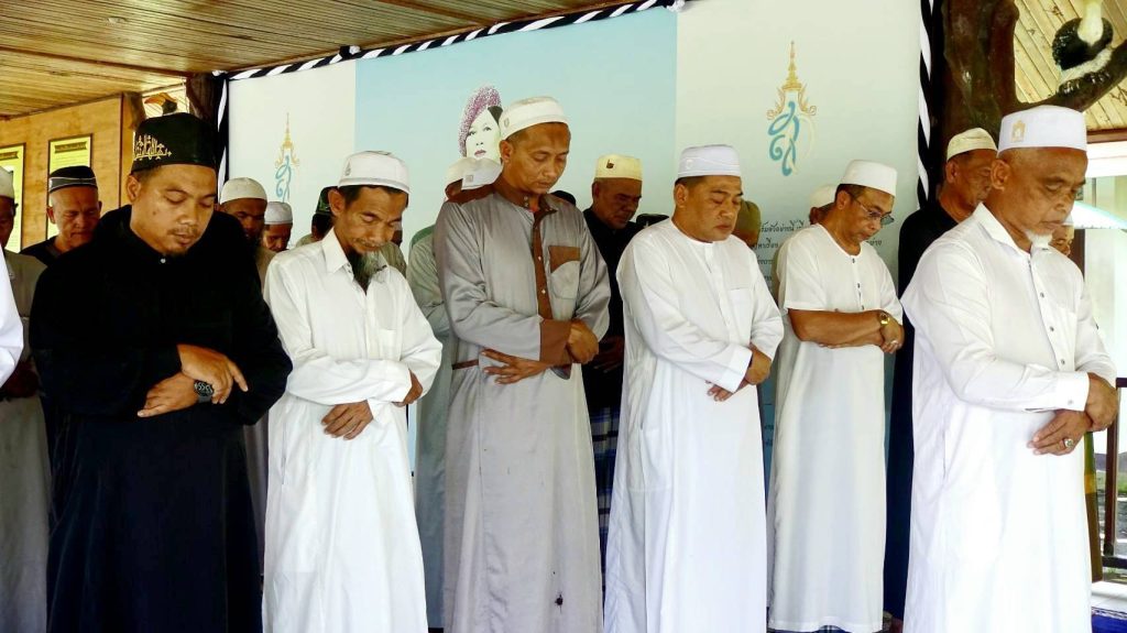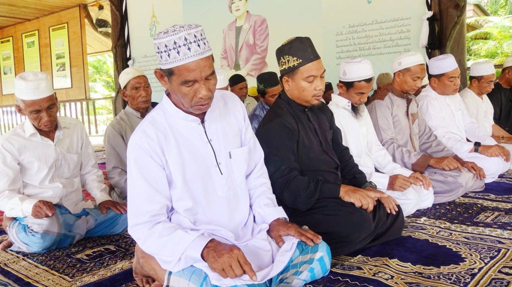 โต๊ะอิหม่ามนำชาวมุสลิมพื้นที่ ต.กะลุวอ อ.เมืองนราธิวาส ร่วมละหมาดฮายัตที่หมู่บ้านรอตันบาตู ด้วยความสำนึกในพระมหากรุณาธิคุณ สมเด็จพระนางเจ้าสิริกิติ์ พระบรมราชินีนาถ พระบรมราชชนนีพันปีหลวง