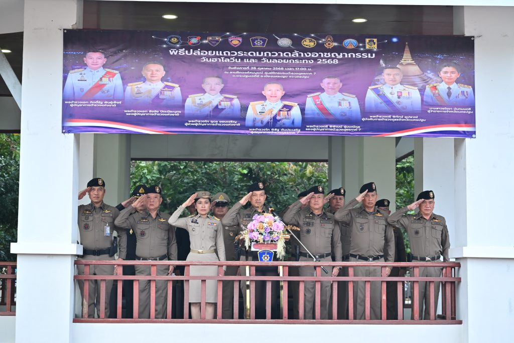 พิธีดังกล่าวได้จัดขึ้นที่บริเวณลานฝึกวงศ์สมบูรณ์ ศูนย์ฝึกอบรมตำรวจภูธร ภ.7 อ.เมือง จ.นครปฐม โดย พล.ต.ท.อุดร ยอมเจริญ ผู้ช่วยผู้บัญชาการตำรวจแห่งชาติ เป็นประธานปล่อยแถวระดมกวาดล้างอาชญากรรมช่วงเทศกาลฮาโลวีนและประเพณีลอยกระทง ประจำปี 68 โดยมี น.ส.อโรชา นันทมนตรี ผวจ.นครปฐม พร้อมด้วย รองผู้บัญชาการตำรวจภูธร ภ.7 ผู้บังคับการตำรวจภูธร จ.นครปฐม เจ้ากรมการสัตว์ทหารบก รองผู้อำนวยการรักษาความมั่นคงภายใน จ.นครปฐม นายอำเภอเมืองนครปฐม เจ้าหน้าที่ทหาร ตำรวจ ฝ่ายปกครองและหน่วยงานที่เกี่ยวข้อง ร่วมพิธีปล่อยแถวในครั้งนี้ โดยตำรวจภูธร ภ.7 ได้บูรณาการหน่วยงานทุกภาคส่วนที่เกี่ยวข้อง เพื่อสร้างความปลอดภัยให้กับพี่น้องประชาชน ซึ่งในช่วงเทศกาลฮาโลวีนและประเพณีลอยกระทง ที่คาดว่าจะมีประชาชนและนักท่องเที่ยวเข้าร่วมกิจกรรมดังกล่าว รวมถึงการเดินทางไปท่องเที่ยวตามสถานที่ต่าง ๆ เป็นจำนวนมาก ที่อาจเกิดความไม่สะดวกในการเดินทาง อีกทั้งปัญหาด้านอาชญากรรม ด้านการสร้างความเดือดร้อนลำคาญ และอันตรายที่เกิดจากการเล่นดอกไม้เพลิง พลุ ประทัด และโคมลอย รวมถึงอาจมีมิจฉาชีพแอบแฝงเข้าไปประทุษร้ายต่อทรัพย์สิน ในสถานที่จัดงานต่าง ๆ ได้ โดยมีเป้าหมายในการระดมกวาดล้างอาชญากรรม ที่ส่งผลกระทบต่อประชาชน