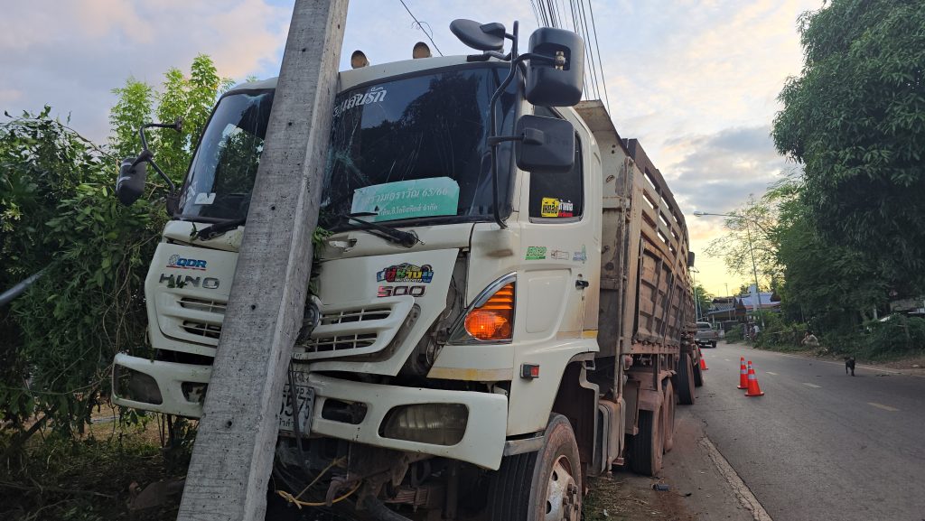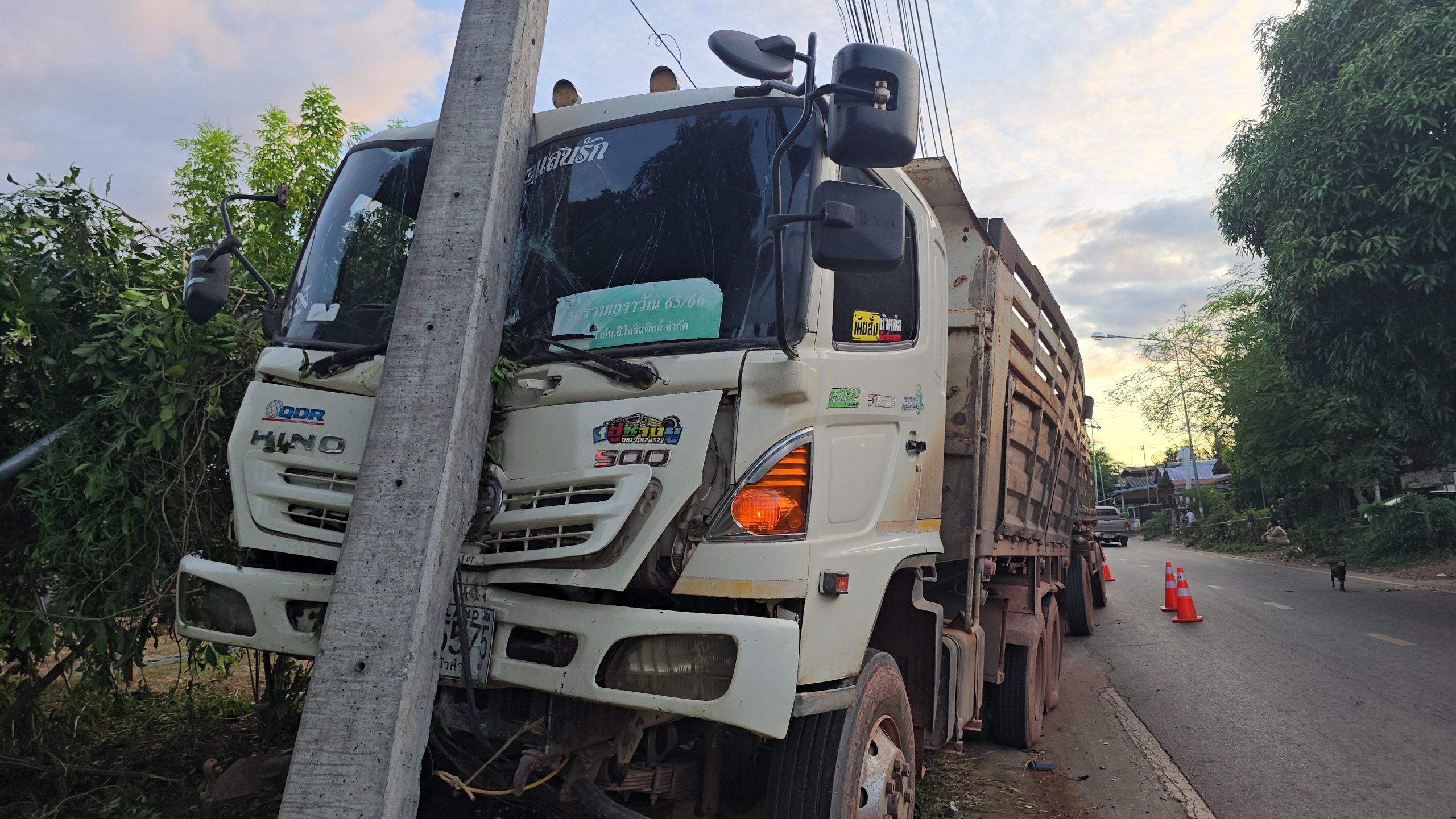 เกิดอุบัติเหตุ  สิบล้อพ่วงบรรทุกหิน เสียหลักพุ่งชนรถยนต์ ที่จอดอยู่ริมถนน 3 คันรวด ก่อนพุ่งชนเสาไฟฟ้าแรงสูงหัก ไป 1 ต้น