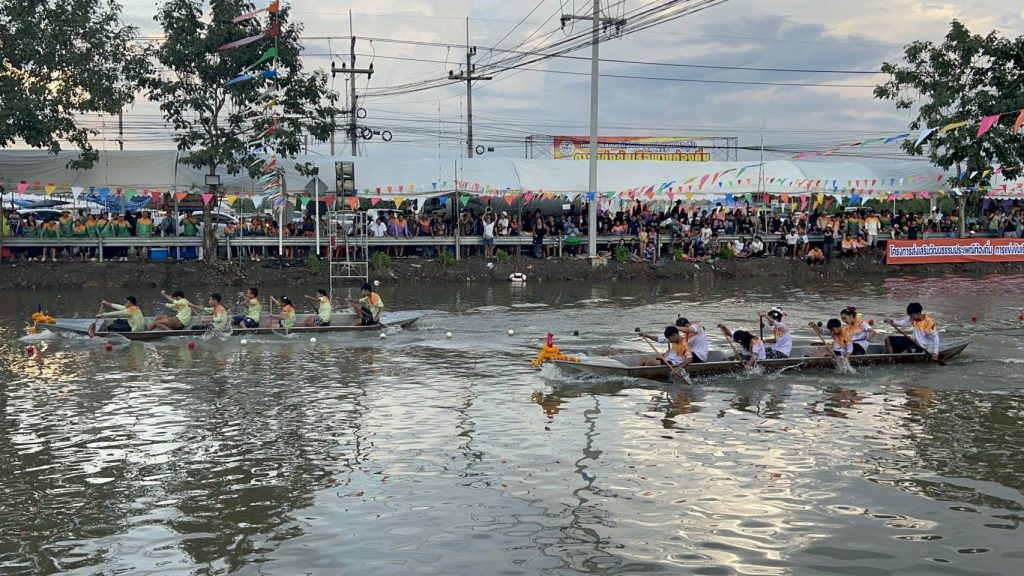 ปทุมธานี แข่งเรือพายพื้นบ้าน คึกคักเยาวชนร่วมสืบสานประเพณี พร้อมพิธีจุดเทียนชัยถวาย ไว้อาลัย พระพันปีหลวง