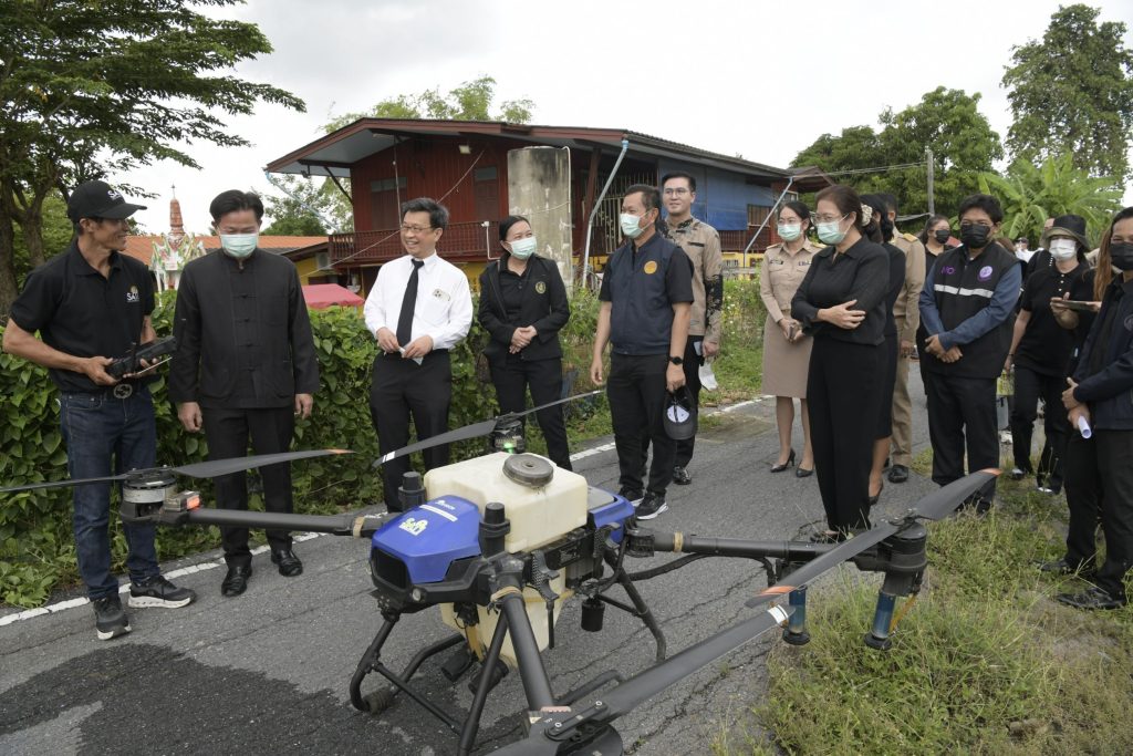 วันที่ 3 พฤศจิกายน 2568 เวลา 09.30 น. ณ ห้องประชุมสภาเทศบาลตำบลไทรน้อย ชั้น 2 และบริเวณคลองพระพิมล หมู่ที่ 5 (หน้าศาลเจ้าพ่อจุ้ย หลังเก่า) อำเภอไทรน้อย จังหวัดนนทบุรี นายเกียรติศักดิ์ ตรงศิริ ผู้ว่าราชการจังหวัดนนทบุรี หัวหน้าคณะรับชมการทดลองการนำสารชีวภาพ “สวพ.62-RID No.1” มาใช้ในการพัฒนาฟื้นฟูและแก้ปัญหาแหล่งน้ำในพื้นที่จังหวัดนนทบุรี (พื้นที่ทดลอง) โดยใช้อากาศยานไร้คนขับ (โดรน) พร้อมด้วยนางระวีพรรณ แก้วเพียงเพ็ญ รองผู้ว่าราชการจังหวัดนนทบุรี นางสาวสะอาด พิมพ์สมบูรณ์ นายอำเภอไทรน้อย นายอาภากร สนิกะวาที ผู้อำนวยการโครงการชลประทานนนทบุรี และนายณัฏฐพร จันทร์แก้ว นายกเทศบาลตำบลไทรน้อย เข้าร่วมประชุมและรับชมการทดลอง มีนายศรชัย อ้นอารี โยธาธิการและผังเมืองจังหวัดนนทบุรี ฝ่ายเลขานุการในคณะทำงานฯ ซึ่งเป็นหน่วยงานหลักดำเนินการกำหนดแหล่งน้ำและติดตามผลในการทดสอบสารฯ และมีนางธัญลักษณ์ แต่บรรพกุล ผู้อำนวยการสำนักวิจัยและพัฒนาด้านวิทยาศาสตร์และสิ่งแวดล้อม กรมชลประทาน เป็นผู้บรรยายสรุปและดำเนินการฉีดพ่นสารกึ่งชีวภาพ สวพ.62-RID No.1 ที่มีคุณสมบัติในการกำจัดผักตบชวาที่ไม่ก่อให้เกิดมลพิษ และอันตรายต่อสัตว์น้ำ โดยใช้พื้นที่สาธิตบริเวณคลองพระพิมล หมู่ที่ 5 เทศบาลตำบลไทรน้อย อำเภอไทรน้อย จังหวัดนนทบุรี เป็นพื้นที่นำร่องในการทดลองดังกล่าวฯ เพื่อแก้ปัญหาผักตบชวาในพื้นที่จังหวัดนนทบุรี ในระยะยาวต่อไป
