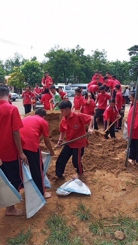 บรรยากาศเป็นไปด้วยความร่วมมือและสามัคคี ชาวบ้าน คณะครู และนักเรียนต่างช่วยกันอย่างแข็งขัน สะท้อนให้เห็นถึงพลังของความสามัคคีในชุมชน ที่พร้อมยืนหยัดร่วมกันป้องกันและบรรเทาผลกระทบจากสถานการณ์น้ำท่วมในครั้งนี้
