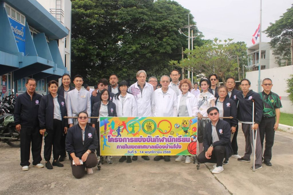อ,บ้านโป่ง จ,ราชบุรี เมื่อวันที่ 5 พ,ย, 68 นายอัครเดช วงษ์พิทักษ์โรจน์ สมาชิกสภาผู้แทนราษฎร จังหวัดราชบุรี เขต 4 อ,บ้านโป่ง ประธานคณะกรรมาธิการการอุตสาหกรรม เป็นประธานในพิธีลั่นฆ้อง เปิดโครงการแข่งขันกีฬานักเรียนภายในเขตเทศบาลเมืองบ้านโป่ง โดยมีนายกฤษฎา ประดิษฐ์กุล นายกเทศมนตรีเมืองบ้านโป่ง ประธานคณะกรรมการจัดการแข่งขันฯกล่าวรายงานวัตถุประสงค์เพื่อส่งเสริมให้นักเรียนภายในเขตเทศบาล ให้ความสนใจด้านการกีฬามากยิ่งขึ้น มีความสามัคคี รู้แพ้รู้ชนะรู้อภัยการพัฒนาร่างกายและจิตใจของนักเรียนให้สมบูรณ์ สุขภาพแข็งแรง ทั้งนี้คณะผู้บริหาร สมาชิกสภาเทศบาลหัวหน้าส่วนราชการ คณะกรรมการสถานศึกษา คณะครู นักเรียน ผู้นำชุมชนและประชาชน เข้าร่วมเปิดการแข่งขันกีฬาภายใน เขตเทศบาลเมืองบ้านโป่ง ต่อมาวงโยธวาทิตบรรเลงเพลงชาติไทย เจ้าหน้าที่ชักธงชาติไทยสู่ยอดเสา และบรรเลงเพลงกราวกีฬา นอกจากนี้พิธีกรกล่าวเชิญนักกีฬาวิ่งคบเพลิง และกล่าวเชิญนักกีฬาอาวุโสประจำโพเดียม เพื่อนำนักกีฬา กล่าวปฏิญาณตนและอ่านประวัตินักกีฬาอาวุโส พร้อมมอบโล่ที่ระลึกให้แก่ตัวแทนนักเรียนที่เข้าร่วมแข่งขันครั้งนี้ / ที่ สนามศูนย์เยาวชนเทศบาลเมืองบ้านโป่ง จ,ราชบุรี / อมร ราชบุรี