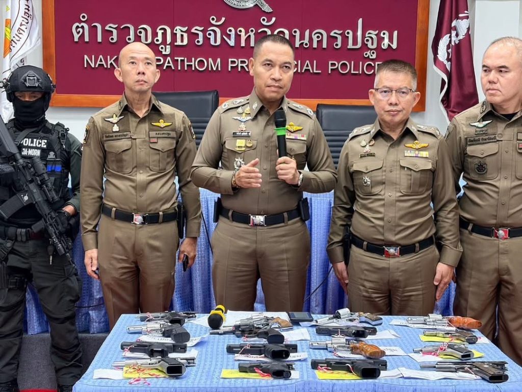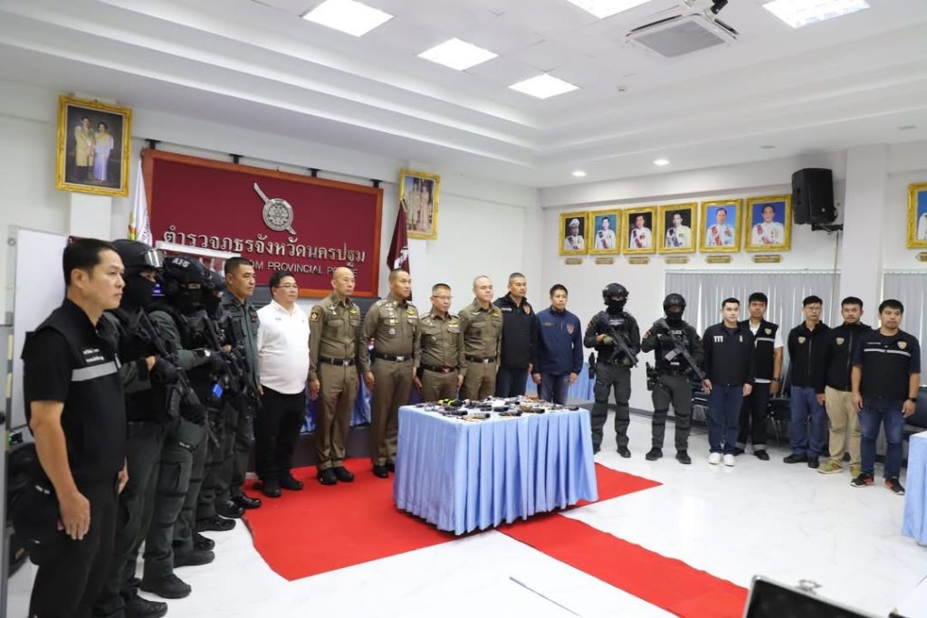 ภ.จว.นครปฐม ได้แถลงผลการจับกุมปฏิบัติ จับกุมอาวุธปืน เครื่องกระสุนปืนและยาเสพติด