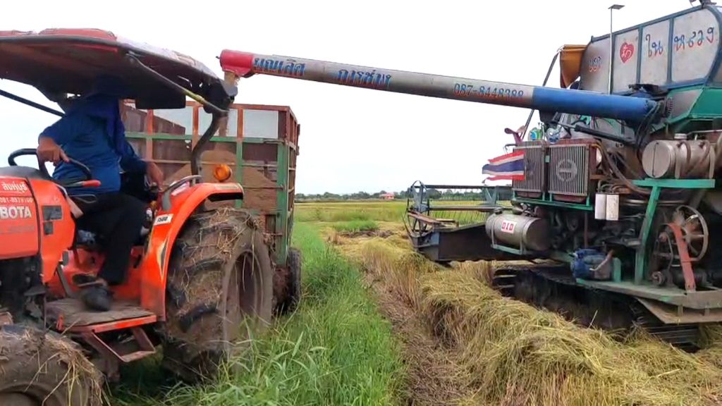 ชาวนาลพบุรีเร่งเกี่ยวข้าวหนีน้ำแม้ราคาตกต่ำความชื่นสูงวอนรัฐช่วย
