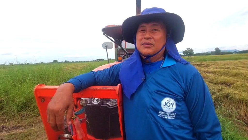 โดย นายดำรง ยวงทอง อายุ 60 ปี เกษตรกรผู้ทำนาน อำเภอบ้านหมี่ จังหวัดลพบุรี ได้เปิดเผยว่า ต้องเร่งเก็บเกี่ยหนีน้ำและจะมีฝนตกลงมาทำให้ข้าวในนาของตนมีความชื่นไม่ต่ำกว่าร้อยละ 30 ราคาที่จะได้รับก็บังไม่รู้ว่าจะเป็นอย่างไร ซึ่งก็อยากให้รัฐบาลได้ช่วยเหลือไร่ละพันบาทไม่เกิน 10 ไร่เป็นช่วยเหลือ 20 ไร่แม้ว่าช่วยไร่ละพันก็ยังไม่พอใช้หนี้ในการลงทุน สำหรับผลผลิตที่ได้เต็มที่ก็ไม่ถึงเกี่ยวไม่เกิน 20 ถังเจอภัยธรรมชาติมาซ้ำอีก ต้นทุนอื่น ๆ ลงทุนรวมก็ไม่ต่ำกว่าไร่ละ 6 พันบาท หากหมดเกษตรกรที่ทำนาในยุคนี้แล้วก็ไม่รู้ว่าคนรุ่นใหม่จะมาทำนากันหรือไม่อยากให้รัฐบาลบมาช่วยในการประกันราคาข้าว โดยเฉพาะในช่วงนี้ก็ให้เก็บเกี่ยวทั้งที่ข้าวยังไม่สุกเต็มที่ก็ต้องรีบเกี่ยวไม่เช่นนั้นจะเสียหายมากกว่านี้ รวมทั้งช่วยลดต้นทุนในเรื่องราคาน้ำมันที่ใช้ในการทำนาด้วย