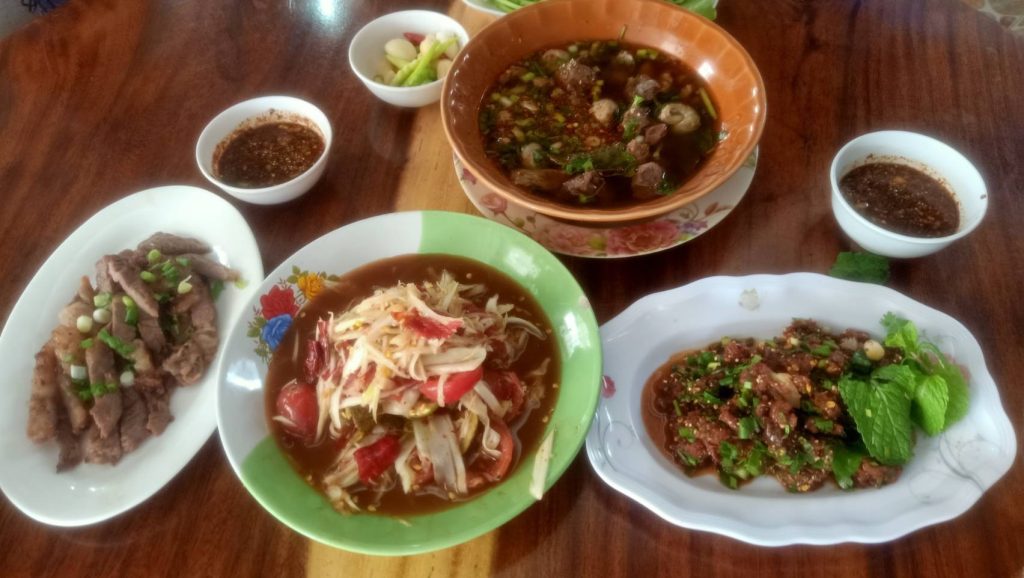 สกลนคร ชิมลาบ ก้อยส้ม ก้อยขม ต้มไส้ขอดร้านยายน้อยหลังราชภัฏ