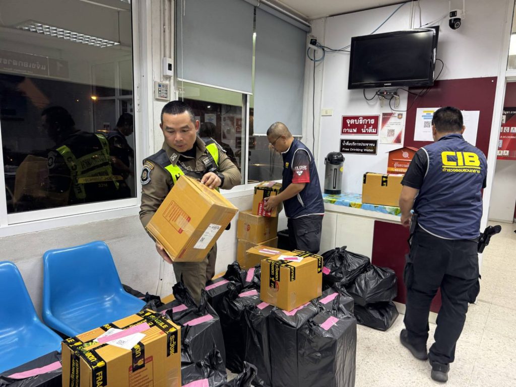 ซึ่งของกลางทั้งหมดบรรจุคละแบบอยู่ในกล่องกระดาษ ทั้งสิ้น 194 กล่อง โดยปรากฎชื่อผู้ส่งพัสดุ