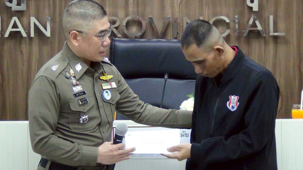มุกดาหาร – ผู้บัญชาการตำรวจภูธร ภาค 4 ตรวจราชการและมอบนโยบาย มอบถุงยังชีพ และมอบเงินรางวัลบำรุงขวัญ ด.ต.อถิสันห์ ฆรินหุ์งามพิศ ผบ.หมู่ (ป) สภ.เมืองมุกดาหารที่ได้รับการบาดเจ็บจากการปฏิบัติหน้าที่