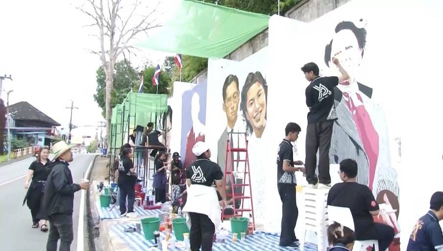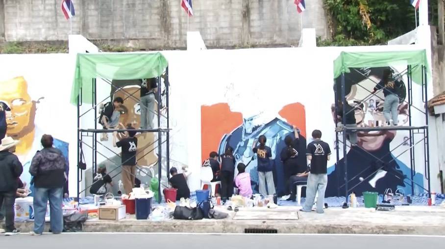 จ.ขันทบุรี นักศึกษาและคณาจารย์ สาขาทัศนศิลป์ มหาวิทยาลัยราชภัฏรำไพพรรณี ร่วมถ่ายทอดพระบรมสาทิสลักษณ์ บนกำแพงชุมชนที่ 1 บ้านลุ่ม จันทบุรี ถ่ายทอดความสำนึกในพระมหากรุณาธิคุณ