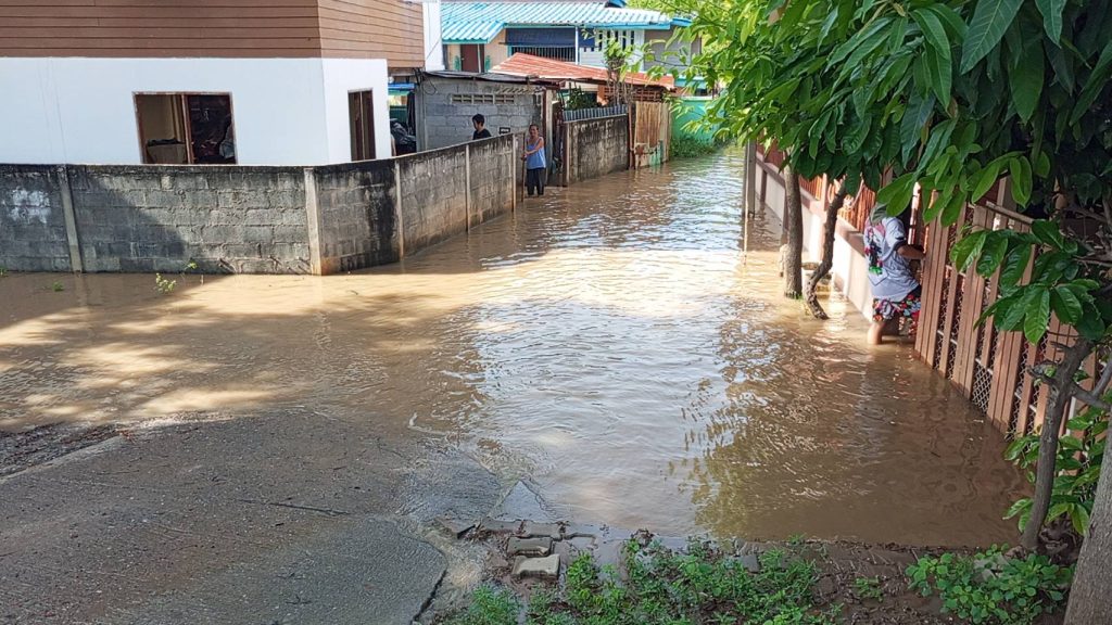 กระสอบทรายริมแม่น้ำเจ้าพระยาพังทลาย น้ำทะลักเข้าท่วมหมู่บ้านในตำบลโรงช้าง จ.สิงห์บุรี