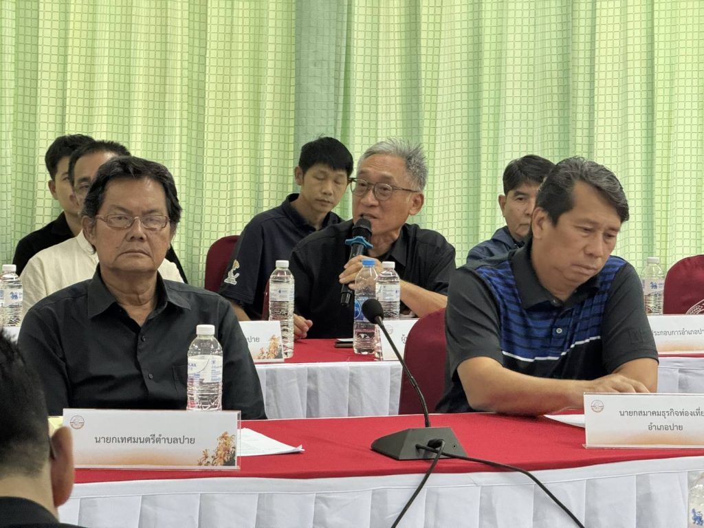 โดยในการประชุมวันนี้ ได้มีผู้แทนส่วนราชการและผู้แทนผู้ประกอบการในพื้นที่อำเภอปายเข้าร่วมหารือแนวทางการพัฒนาเส้นทางบิน ซึ่งที่ประชุมได้แลกเปลี่ยนข้อมูลสถานการณ์การท่องเที่ยวในอำเภอปาย รวมถึงโอกาสและศักยภาพของอำเภอปายในการเป็นจุดหมายปลายทางของนักท่องเที่ยวทั้งชาวไทยและชาวต่างชาติในอนาคต
