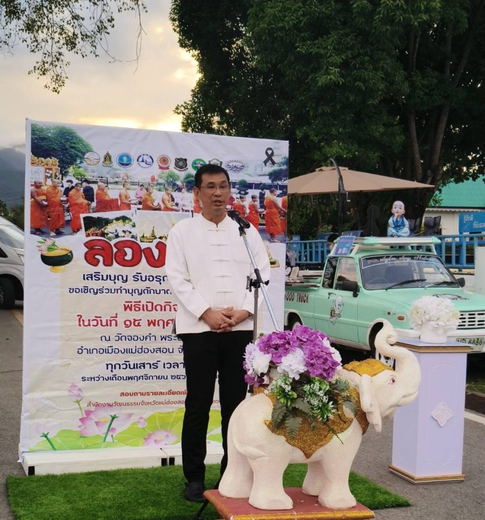 ผู้ว่าราชการจังหวัดแม่ฮ่องสอนคนใหม่พร้อมด้วยภริยา นำหัวหน้าส่วนราชการ ภาคเอกชนและประชาชน พากันร่วมกิจกรรม ” ลองซอง เสริมบุญ รับอรุณ เมืองสามหมอก “