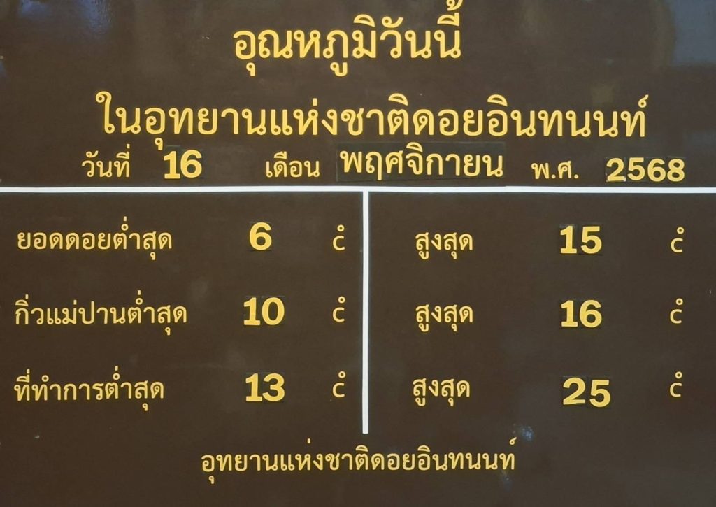 เมื่อเช้าวันที่ 16 พฤศจิกายน 2568 เวลา 07.00 น. ผู้สื่อข่าวรายงานว่าในวันนี้ยอดดอยและกิ่วแม่ปานอากาศเปิดคุณภาพอากาศดีมาก