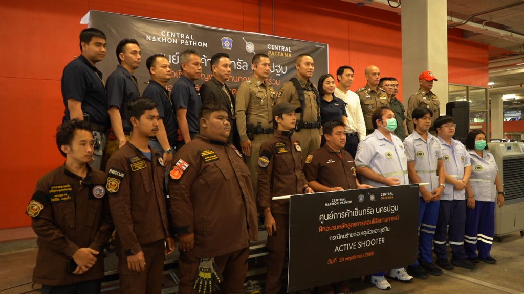 การจัดพิธีซ้อมแผนเผชิญเหตุเสมือนจริง กรณีเกิดเหตุการณ์กราดยิง Active Shooter ครั้งนี้ได้จัดขึ้นที่ภายในห้างสรรพสินค้าเซ็นทรัล นครปฐม ถ.เพชรเกษม ต.สนามจันทร์ อ.เมืองนครปฐม จ.นครปฐม โดย พล.ต.ต.พิทักษ์ อุปพงษ์ ผบก.ภ.จว.นครปฐม ร่วมมือกับห้างสรรพสินค้าเซ็นทรัล นครปฐม นำเจ้าหน้าที่กองกำกับการสืบสวนตำรวจภูธร จ.นครปฐม จำนวน 50 นาย พนักงานห้างสรรพสินค้าเซ็นทรัล นครปฐม จำนวน 90 คน เจ้าหน้าที่กู้ชีพ และเจ้าหน้าที่ด้านสาธารณสุข จำนวน 20 นาย ร่วมพิธีซ้อมแผนเผชิญเหตุเสมือนจริง กรณีเกิดเหตุการณ์กราดยิง Active Shooter ทั้งนี้เนื่องจากปัจจุบัน มีการก่ออาชญากรรมสะเทือนขวัญ ที่มีการใช้อาวุธในการกระทำความผิด โดยการกราดยิงตามสถานที่ต่าง ๆ ส่งผลให้เกิดความสูญเสียต่อชีวิต และทรัพย์สิน รวมถึงสร้างความหวาดกลัวภัย ให้แก่ประชาชนมากยิ่งขึ้น อันเป็นผลกระทบต่อสังคม และความสงบเรียบร้อยของประชาชนโดยรวม