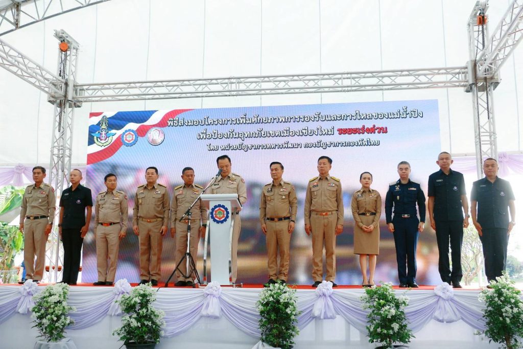 วันที่ 20 พ.ย. 68 ที่ บริเวณพื้นที่สาธารณประโยชน์ริมแม่น้ำปิง เชิงสะพานเม็งราย ต.วัดเกตุ อ.เมืองเชียงใหม่ จ.เชียงใหม่ นายอนุทิน ชาญวีรกูล นายกรัฐมนตรีและรัฐมนตรีว่าการกระทรวงมหาดไทย เป็นประธานและเป็นสักขีพยานในพิธีส่งมอบโครงการเพิ่มประสิทธิภาพการรองรับและการไหลของแม่น้ำปิง หรือ “โครงการขุดลอกแม่น้ำปิง” เพื่อป้องกันอุทกภัยเขตเมืองเชียงใหม่ระยะเร่งด่วน ระหว่าง พลเอก อุกฤษฎ์ บุญตานนท์ ผู้บัญชาการทหารสูงสุด ส่งมอบโครงการให้กับ นายรัฐพล นราดิศร ผู้ว่าราชการจังหวัดเชียงใหม่ โดยมีผู้บริหารกระทรวง หัวหน้าส่วนราชการ หน่วยงานที่เกี่ยวข้อง และประชาชนชาวเชียงใหม่ ร่วมพิธี