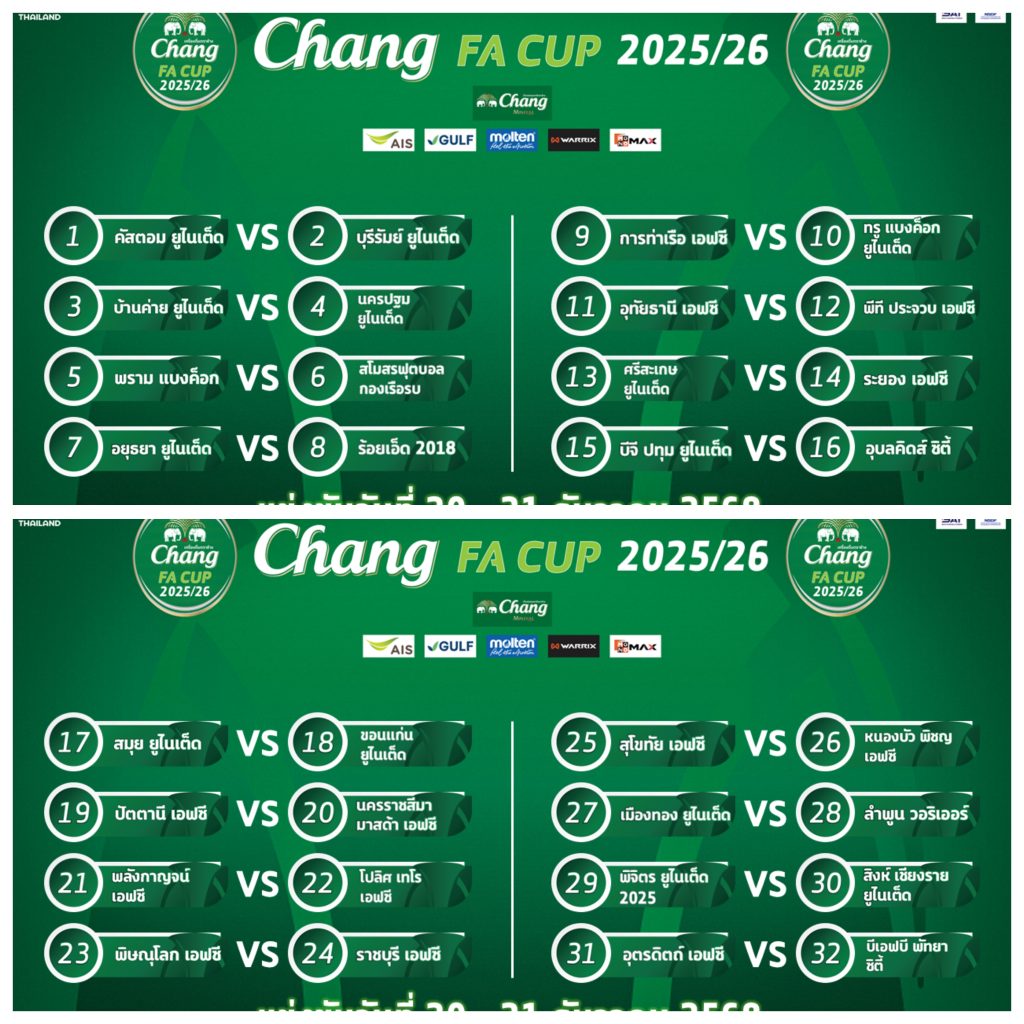 การแข่งขันฟุตบอล ช้าง เอฟเอ คัพ 2025/26 มี 32 ทีม มีดังนี้