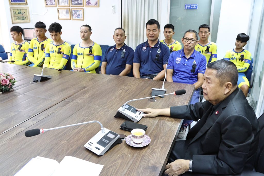 “เสธ.หมึก” ให้กำลังใจนักกีฬาประเภทลู่ปิดท้ายก่อนการแข่งขันกีฬาซีเกมส์ ครั้งที่ 33 พร้อมทั้งชี้แจงรายละเอียดสิทธิต่าง ๆ ที่นักกีฬาจะได้รับ ทั้งเรื่องเบี้ยเลี้ยง-อาหาร-ที่พัก โดยสมาคมกีฬาจักรยานฯ ดูแลอย่างดีไม่มีขาดตกบกพร่อง ให้นักกีฬาพักโรงแรมที่ได้มาตรฐาน ค่าส่วนต่างที่เกิดขึ้นสมาคมฯ รับผิดชอบเองทั้งหมด โดยสำรองจ่ายไปก่อน เพื่อสร้างขวัญและกำลังใจให้แก่นักกีฬาทุกคน ส่วนเป้าหมายในกีฬาซีเกมส์ครั้งนี้ ยังยืนยันอย่างน้อย 6 เหรียญทองเช่นเดิม