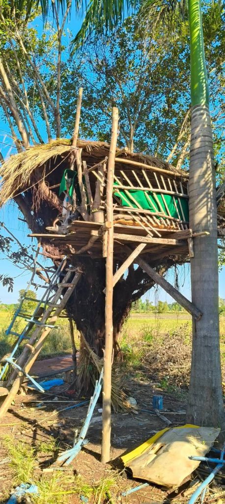 พาไปดูคนที่มีความคิดสร้างสรรค์ ทำที่พักบนต้นไม้ ห่างจากพื้น 3 เมตร เป็นสถานที่พักผ่อนหย่อนใจและหลับนอน เป็นสถานที่สังสรรค์ก็ได้ใครจะเอาเป็นตัวอย่างไม่หวงครับ