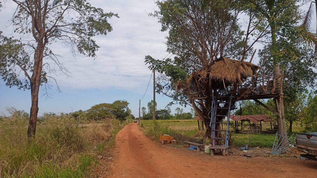 เพจสกลนครทันข่าว ได้โพสต์บ้านต้นไม้จนมีผู้ติดตาม หว่า 6 แสนคน เจ้าของเพจคือคุณสุรพล นนทะศรี ได้พาไปที่บ้านของนายไพรวัลย์ บุญมี อายุ 53 ปี และ น.ส.เจนจิรา ทุมมา 44 ปี บ้านเลขที่ 441 ม.3 ต.ฮางโฮง อ.เมือง จ.สกลนคร ซึ่งตั้งอยู่กลางทุ่งนาบรรยากาศโล่งมีต้นไม้น้อย ที่หน้าบ้านมีบ้านลักษณะเป็นกระต๊อบอยู่บนต้นไทรย้อยและต้นปาล์ม สูงจากพื้นดินประมาณ 3 เมตร ด้านบนหลังคามุงจาก พื้นปูด้วยไม้ไผ่มีแผ่นยางปูทับอีกชั้นหนึ่ง ข้างบนมีพัดลม ดบาะนั่งพักผ่อน และมีเครื่องเสียงพร้อมตู้ลำโพงไว้ขับกล่อม