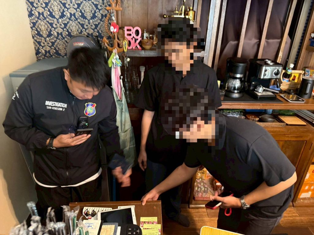 โดยจากการตรวจสอบพบว่าร้านดังกล่าวมีชาวต่างชาติเป็นผู้ถือหุ้น และพบพนักงานชาวเมียนมา 2 คนกำลังทำงานอยู่ภายในร้าน ไม่สามารถสื่อสารภาษาไทยได้โดยจากการตรวจสอบ ระบบฐานข้อมูล บุคคลต่างด้าวทั้ง 2 พบว่าไม่มีใบอนุญาตทำงานและหนึ่งในผู้ต้องหามีการอยู่ในอาณาจักรเกินกว่า 200 วัน จึงได้จับกุมตัวชาวพม่าททั้ง 2 พร้อมกับ แจ้งข้อกล่าวหาทำงาน เป็นบุคคลต่างด้าวทำงานโดยไม่ได้รับอนุญาต ตาม พรก.การบริหารจัดการการทำงานของคนต่างด้าว มาตรา 9 และข้อหา เป็นบุคคลต่างด้าวอยู่ในราชอาณาจักรเกินกว่าที่กฎหมายกำหนด ตามพระราชบัญญัติคนเข้าเมือง มาตรา 81”