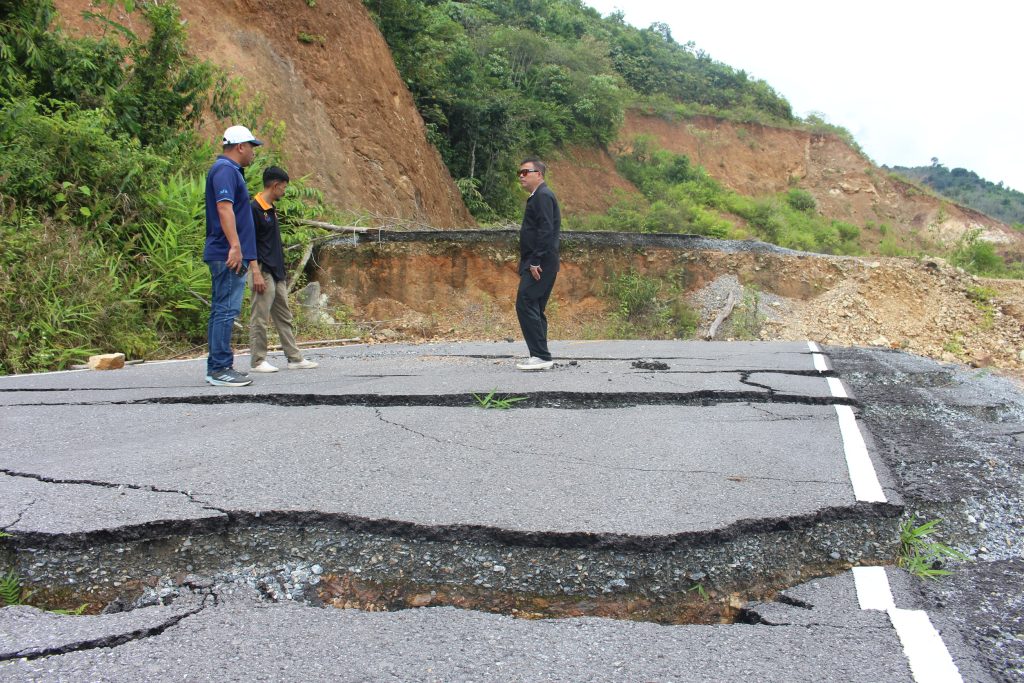 ยะลาฝนตกหนักต่อเนื่องทำถนนรอบอ่างเก็บน้ำยะรม ทรุดตัว ผิวถนนเกิดการแยกตัว