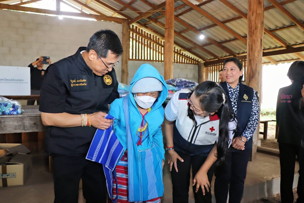ในโอกาสนี้ ผู้ว่าราชการจังหวัดแม่ฮ่องสอน และ นายกเหล่ากาชาดจังหวัดแม่ฮ่องสอน ได้พบปะชาวบ้านในพื้นที่ด้วยความห่วงใยในความเป็นอยู่ พร้อมกับมอบเครื่องห่มกันหนาวและยาสามัญประจำบ้าน จำนวน 120 ชุด เพื่อเป็นการบรรเทาความเดือดร้อนจากสภาพอากาศหนาวของประชาชนในพื้นที่