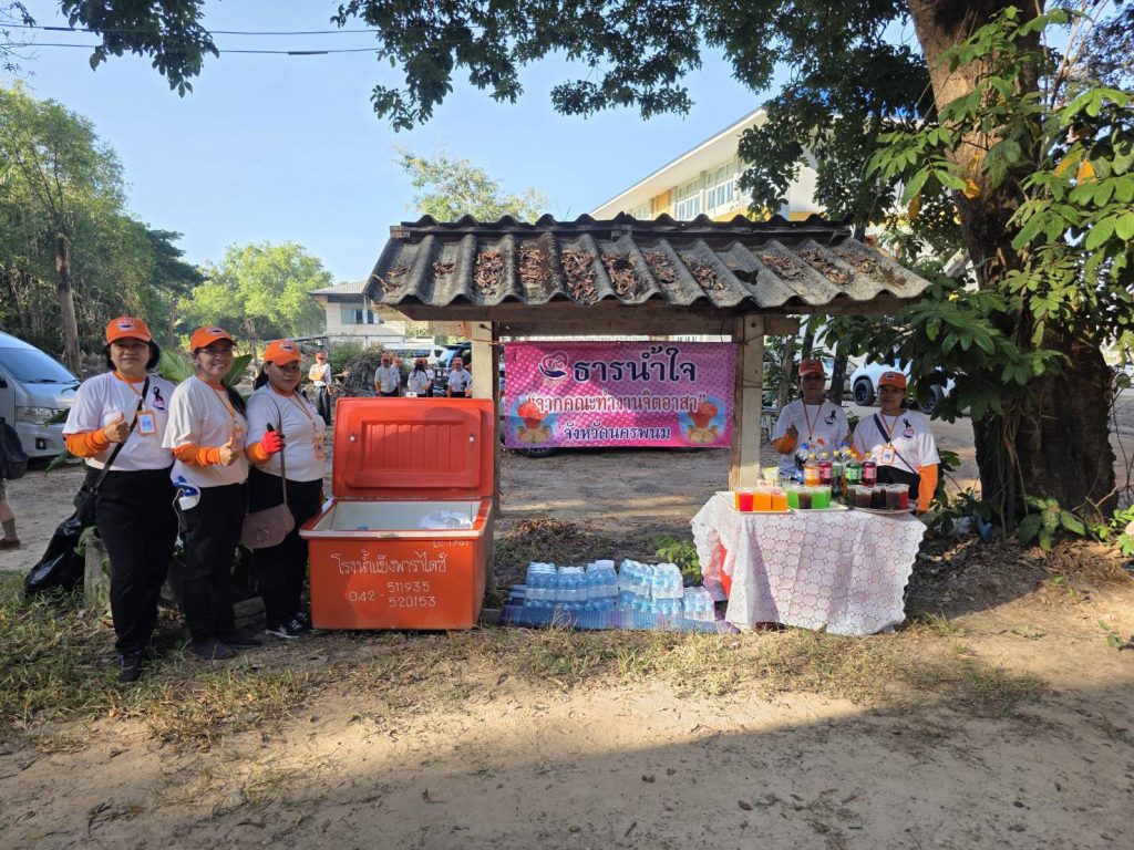 คณะทำงานจิตอาสาจังหวัดนครพนม นำโดย นางสาวนลินชนัน กลางคำ ประธานคณะทำงานฯ ซึ่งได้รับมอบหมายจาก นางศรานันท์ คูโคเวค ประธานจิตอาสา และ นายประทวน สุวรรณ์ รองประธานจิตอาสา ได้นำคณะจิตอาสาจำนวน 34 คน เข้าร่วมกิจกรรมบำเพ็ญประโยชน์ในครั้งนี้ พร้อมจัดบริการน้ำดื่มให้แก่ผู้เข้าร่วมงาน เพื่อสนับสนุนการทำความดีอย่างพร้อมเพรียงและสมพระเกียรติ
