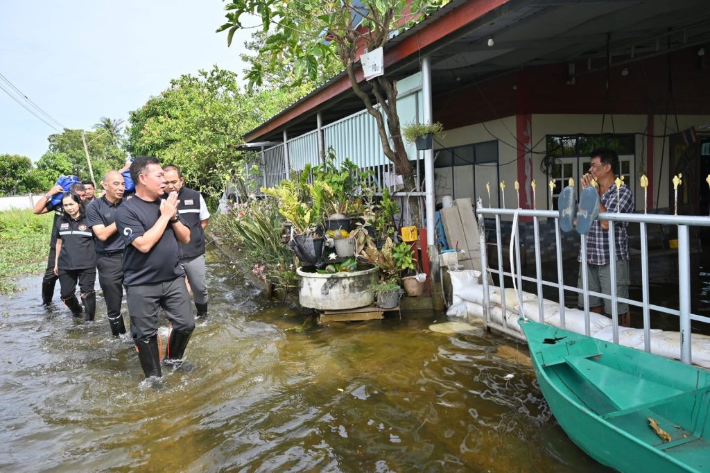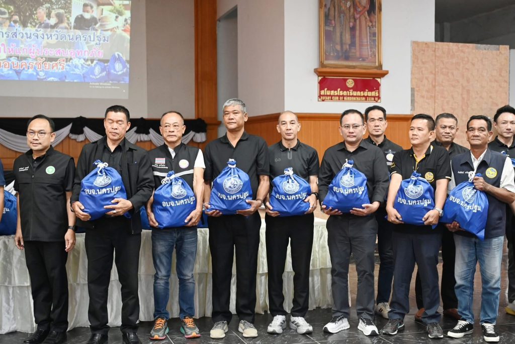 นายก อบจ.นครปฐมมอบถุงยังชีพให้แก่ผู้นำชุมชนในพื้นที่ อำเภอนครชัยศรีเพื่อมอบให้ประชาชนที่ได้รับความเดือดร้อนจากเหตุอุทกภัยน้ำท่วม