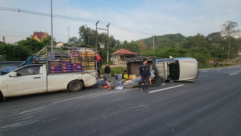 ขณะนี้ได้ประสานญาติเข้ามาช่วยขนย้ายสินค้า และเตรียมดำเนินการกู้รถเพื่อนำไปซ่อมต่อไป ไม่มีทรัพย์สินทางราชการเสียหายแต่อย่างใด จึงได้ถ่ายรูปและทำแผนที่เกิดเหตุเพื่อเป็นหลักฐาน
