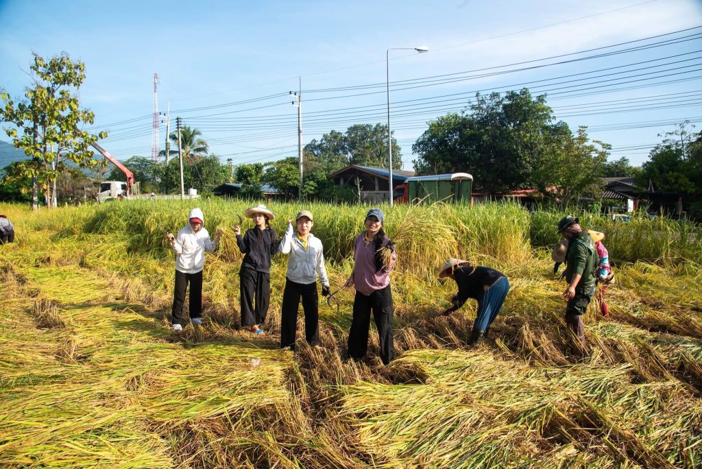 นอกจากนี้ยังแบ่งปันไปให้กับชุมชนหรือครอบครัวของผู้ขาดแคลนได้อีกทางหนึ่ง ซึ่งทางโรงเรียนได้ดำเนินการปลูกและเก็บเกี่ยวข้าวมาอย่างต่อเนื่องทุกปี ที่นอกจากจะได้ผลผลิตแล้ว ยังเป็นการเสริมสร้างการมีส่วนร่วมของโรงเรียน ชุมชนหรือหน่วยงานอื่นๆ ในระหว่างที่ทุกคนกำลังเกี่ยวข้าวนั้น มีกลุ่มนักท่องเที่ยวชาวต่างชาติที่กำลังจะไปท่องเที่ยวที่บ้านรักไทย แวะเข้ามาชมและสอบถามถึงแนวคิดของการปลูกข้าวด้วยความสนใจ