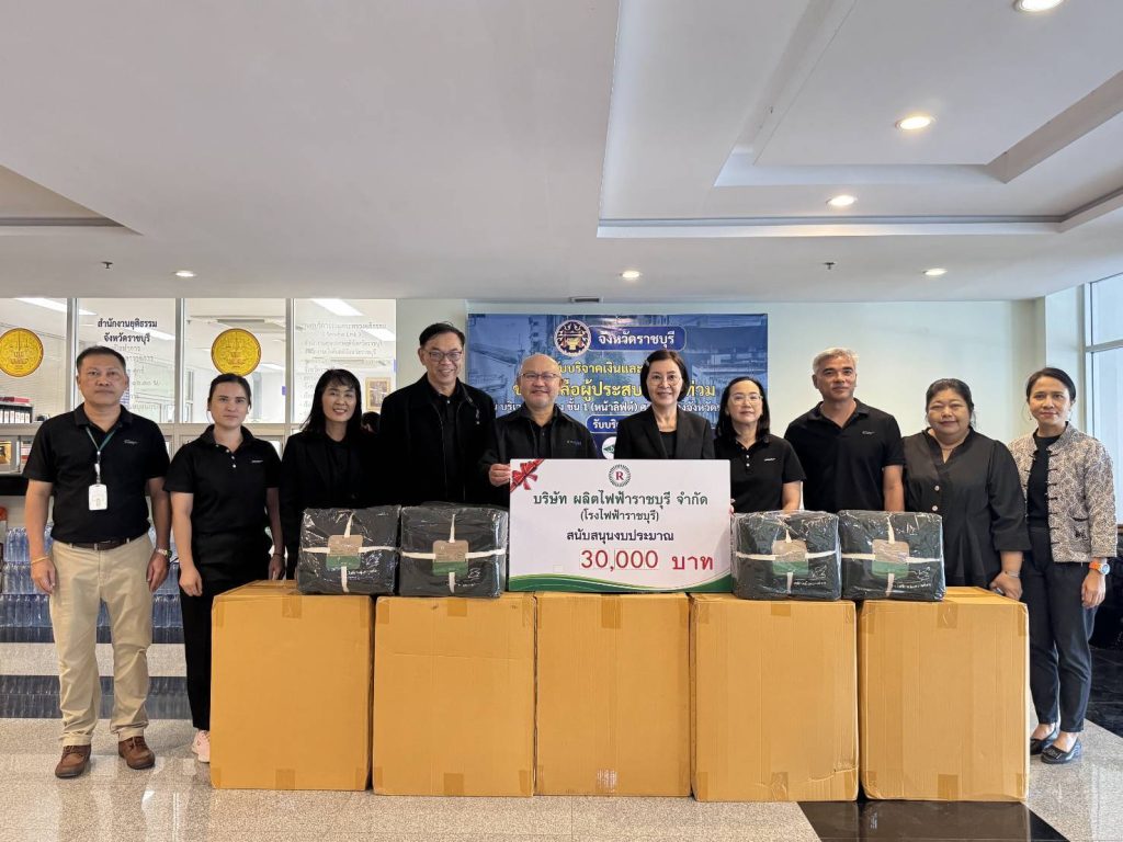เมื่อวันที่ 27 พฤศจิกายน 2568 บริษัท ผลิตไฟฟ้าราชบุรี จำกัด (โรงไฟฟ้าราชบุรี) โดย นายจตุพร โสภารักษ์ กรรมการผู้จัดการ มอบเงินช่วยเหลือผู้ประสบเหตุอุทกภัยในจังหวัดทางภาคใต้ จำนวนเงิน 30,000 บาท พร้อมมอบผ้าห่มรักษ์โลก รีไซเคิล จากขวดพลาสติก PET 100% จำนวน 50 ผืน มูลค่าประมาณ 12000 บาท โดยมอบผ่านจังหวัดราชบุรี มีนางสาวฐิติลักษณ์ คำพา ผู้ว่าราชการจังหวัดราชบุรีเป็นผู้รับมอบ ณ ศาลากลางจังหวัดราชบุรี เพื่อส่งต่อไปช่วยเหลือประชาชนที่ได้รับความเดือดร้อนจากเหตุอุทกภัยในภาคใต้ต่อไป