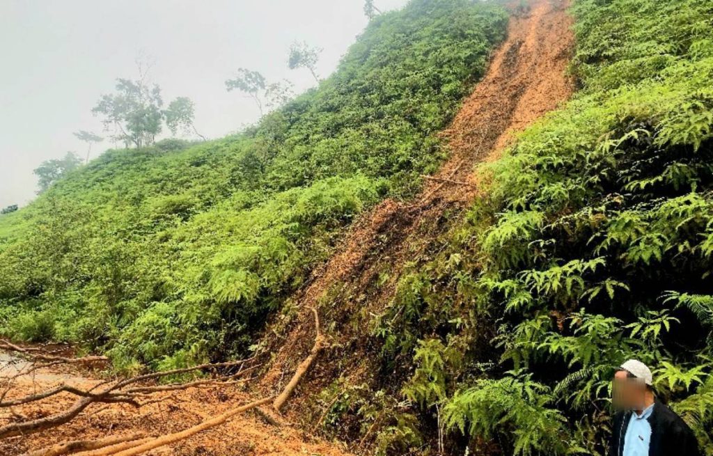 ดินสไลด์ทับเส้นทาง บ้านน้ำหอม – ศรีสาคร อ.จะแนะจากน้ำฝนสะสม 6 วัน