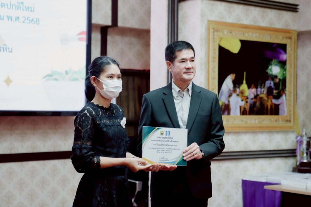 วันที่ 28 พฤศจิกายน 2568 นายนพพร วุฒิกุล นายกเทศมนตรีนครหัวหิน พร้อมด้วยคณะผู้บริหาร ปลัดเทศบาล รองปลัด หัวหน้าส่วนราชการ และเจ้าหน้าที่กองสาธารณสุขฯ ร่วมเป็นประธานในพิธี มอบป้ายรับรองมาตรฐานสุขาภิบาลอาหารวิถีชีวิตใหม่ (New Normal) มาตรฐาน SAN ตามโครงการยกระดับคุณภาพร้านอาหารของเทศบาลนครหัวหิน