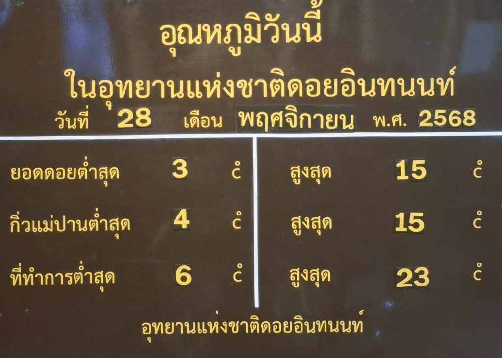 ครั้งที่ 5 วันที่ 28.11.2568 อุณหภูมิต่ำสุด 3 องศาเซลเซียส หน่วยพิทักษ์อุทยานแห่งชาติดอยอินทนนท์ อน.5 (ยอดดอย)(06.00 น.)