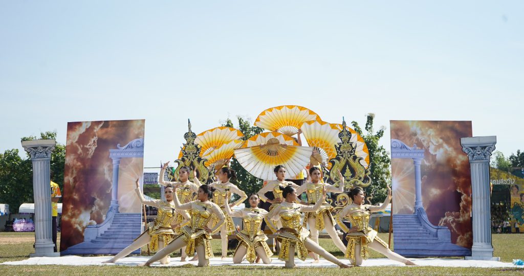 จากนั้นเข้าสู่พิธีเปิดงานอย่างเป็นทางการ โดยมีการแสดงสแตนเชียร์ชุดๆอลังการของแต่ละคณะสี พร้อม พร้อมการแสดงจินตลีลา ถึงผลงานของศิลปาชีพ เพื่อน้อมรำลึกถึงสมเด็จพระนางเจ้าสิริกิติติ์ พระบรมราชินีนาถ พระบรมราชชนนีพระพันปีหลวง ร่วมส่งเสด็จสู่สวรรคาลัย