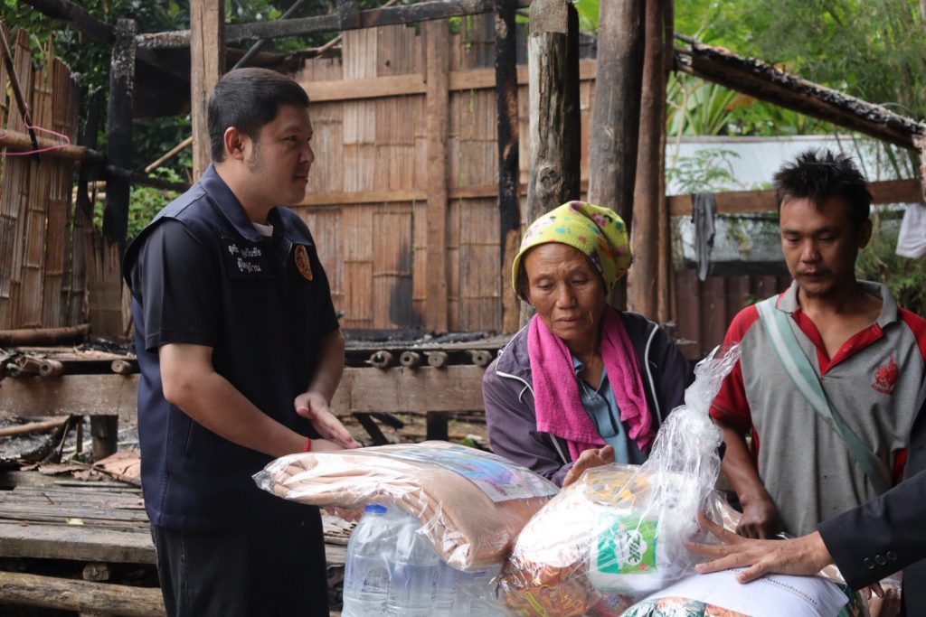 นายอำเภอแม่สะเรียง ลงพื้นที่เยี่ยมให้กำลังใจและมอบสิ่งของช่วยเหลือครอบครัวผู้ประสบเหตุไฟไหม้บ้าน