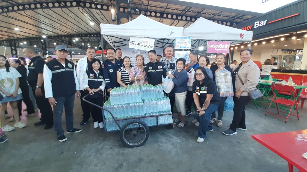 โดยภายในจุดรับบริจาคได้มีศิลปินนักร้อง นักแสดง ตลก จำนวนมากร่วมให้ความบันเทิงกับชาวบ้านที่เข้ามาร่วมบริจาดโดยนายสุจินต์ ตันฑเทอดธรรม เจ้าของตลาดบ้านฟ้า เลอ มาร์เช่ อนุเคราะห์สถานที่ในการรับของบริจาคในครั้งนี้ ในขณะที่บรรยากาศตลอดทั้งวันมีผู้ใจบุญทยอยเดินทางนำของบริจาคมาร่วมบริจาคกันอย่างต่อเนื่อง