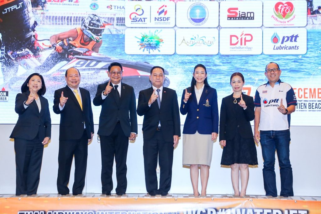 จากการแถลงข่าวร่วมกันของ พล.ต.อ.เดชณรงค์ สุทธิชาญบัญชา นายกสมาคมกีฬาเจ็ตสกีแห่งประเทศไทยฯ, ดร.ชลันดา ชอบจิตร ผู้อำนวยการกองบริหารงานและประเมินผลกีฬาอาชีพ, ดร.สุวรรณา ศิลปะอาชา รองประธานคณะกรรมการโอลิมปิคแห่งประเทศไทย, นายทวีเดช ทองอ่อน ผู้อำนวยการฝ่ายกิจกรรม การท่องเที่ยวแห่งประเทศไทย และ นายวิโรจน์ จงกลวานิชสุข รองอธิบดีกรมทรัพย์สินทางปัญญา ณ ห้องแถลงข่าวชั้น 25 การกีฬาแห่งประเทศไทย ร่วมกันเปิดเผยว่า