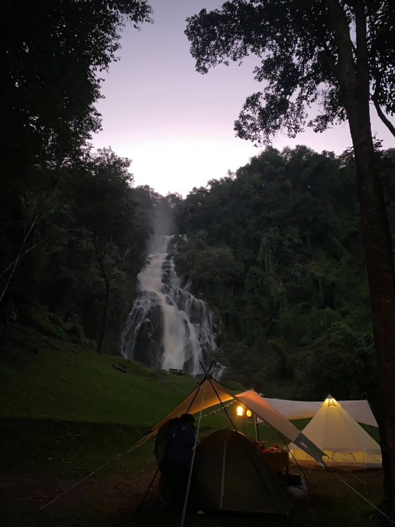 บรรยากาศยามค่ำคืนคืออีกระดับของความฟิน อากาศเย็นสบาย หนาวพอประมาณ ไม่โหดเหมือนยอดดอยสูง ทำให้นอนได้อย่างสบายตัว ยิ่งได้นั่งฟังเสียงน้ำตกผสมกับลมกลางคืนเบา ๆ บอกเลยว่าความผ่อนคลายมาเต็มจนลืมเวลาไปเลยทีเดียว