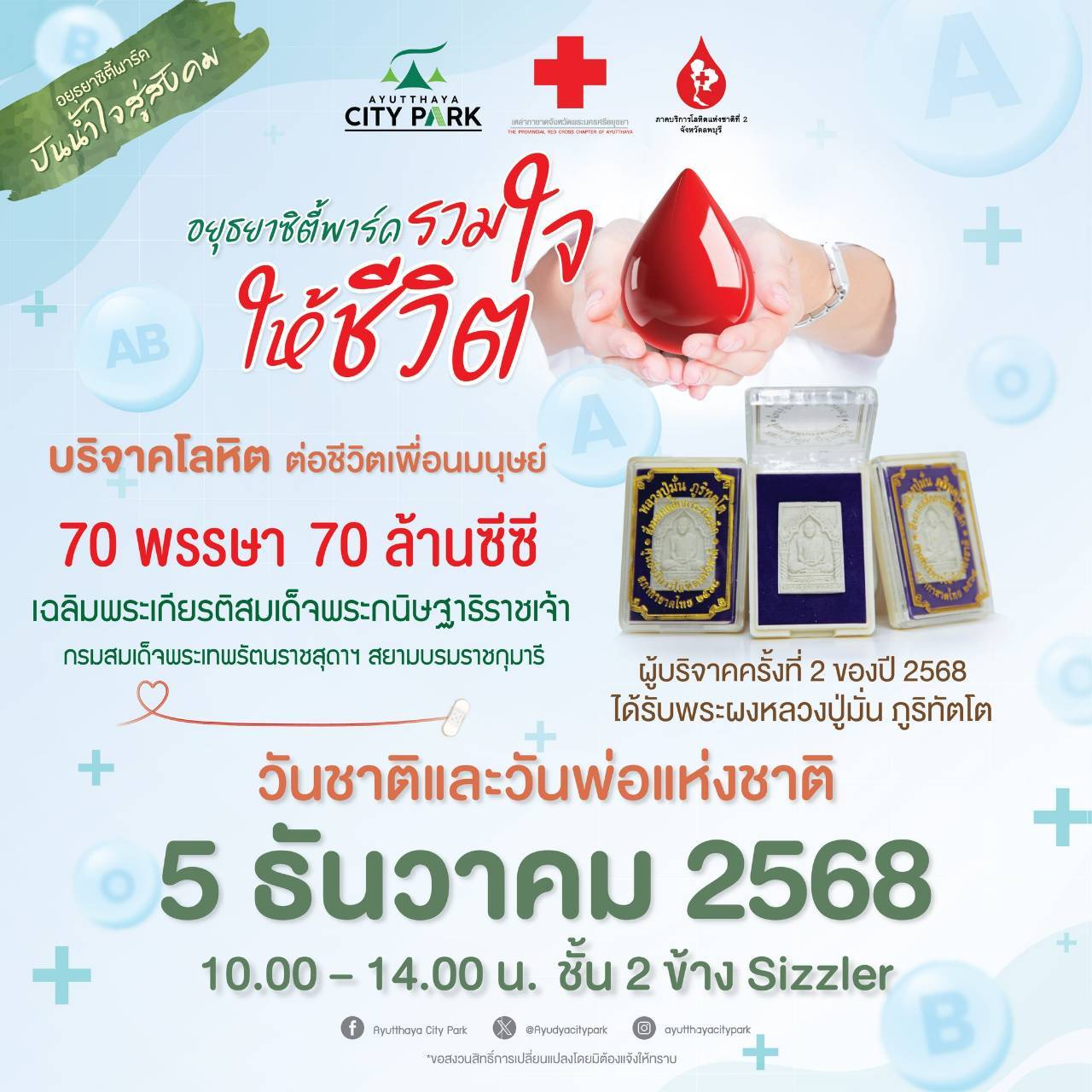 ขอเชิญทุกท่านร่วมบริจาคโลหิต ในงาน “อยุธยาซิตี้พาร์ค รวมใจให้ชีวิต”ร่วมน้อมรำลึกในพระมหากรุณาธิคุณ
