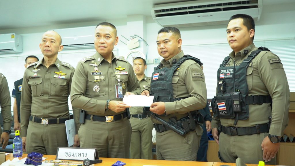 วันนี้ที่ สภ.ดอนตูม อ.ดอนตูม จ.นครปฐม พล.ต.ต.พิทักษ์ อุปพงษ์ ผบก.ภ.จว.นครปฐม พร้อมด้วย พ.ต.อ.ยงลิต ศุภผล ผกก.สภ.ดอนตูม และเจ้าหน้าที่ที่เกี่ยวข้อง ได้จัดแถลงข่าวคดีการจับกุมตัวนายเอกดนัย อ.37 ปี ม.14 ต.ท่าตูม อ.ท่าตูม จ.สุรินทร์ พร้อมของกลางรถยนต์เก๋งฮอนด้า รุ่น แจ๊ส สีขาว หมายเลขทะเบียน กทม. ยาคีตามีน จำนวน 4 ถุง น้ำหนักรวม 100.96 กรัม ยาบ้า จำนวน 5 มัด รวม 10,000 เม็ด โทรศัพท์มือ 1 เครื่อง เงินสดจำนวนหนึ่ง รวมทรัพย์สินมูลค่า 400,000 บาท มาแถลงข่าวต่อสื่อมวลชน ทั้งนี้สืบเนื่องจากเมื่อคืนกลางดึกที่ผ่านมา (3 ธ.ค.68) จนท.ตร.สภ.ดอนตูม ได้รับคำสั่งจากผู้บังคับบัญชา ให้ทำการตั้งจุดตรวจจุดสกัด เพื่อป้องกันเหตุอาชญากรรม การลักลอบขนยาเสพติด และการพกพาอาวุธปืน ในเส้นทางเปลี่ยว บริเวณแยกคลองชลประทานนาปู ม.10 ต.สามง่าม อ.ดอนตูม จ.นครปฐม (ห่างจากบ้านนายกเทศมนตรีตำบลสามง่าม) เพียงไม่กี่เมตร ก็ได้มีรถยนต์เก๋งคันดังกล่าว ขับโดยนายเอกดนัยฯ เข้ามายังบริเวณจุดสกัด แต่แล้วก็ได้เร่งเครื่องขับหลบหนีไปอย่างรวดเร็ว เมื่อ จนท.ตร.เห็นผิดปกติ จึงได้ขับรถเร่งไล่ติดตามไปอย่างกระชั้นชิด จนรถคนร้ายได้ขับหนีเข้าเขต สภ.กำแพงแสน จนท.จึงประสานงานขอกำลังจาก สภ.กำแพงแสน ช่วยสกัดและไล่ล่าอีก 1 ชุด จนกระทั่งรถคนร้ายได้เสียหลัก ขับชนขอบฟุตบาททางเท้า ทำให้รถเกิดพลิกคว่ำและคนร้ายติดคาอยู่ในซากรถ จนท.จึงทำการควบคุมตัวพร้อมตรวจค้นจนพบของกลางดังกล่าวมาแถลงข่าว พร้อมกันนี้ พล.ต.ต.พิทักษ์ อุปพงษ์ ผบก.ภ.จว.นครปฐม ยังได้มอบรางวัลให้กับ จนท.ชุดจับกุม เพื่อเป็นขวัญและกำลังใจ ในการปฏิบัติหน้าที่ต่อไปอีกด้วย