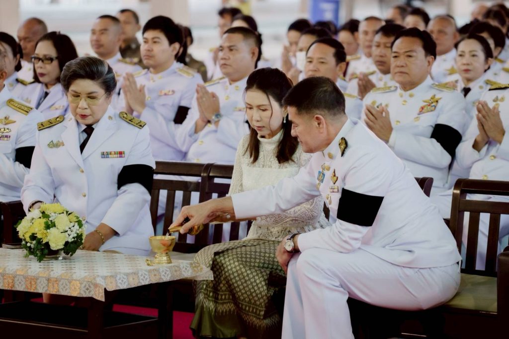 จากนั้นได้ร่วมใน พิธีถวายพานพุ่มดอกไม้สด และพิธีถวายบังคม เพื่อแสดงออกถึงความจงรักภักดี และน้อมรำลึกในพระมหากรุณาธิคุณอันหาที่สุดมิได้ของพระบาทสมเด็จพระเจ้าอยู่หัวรัชกาลที่ 9