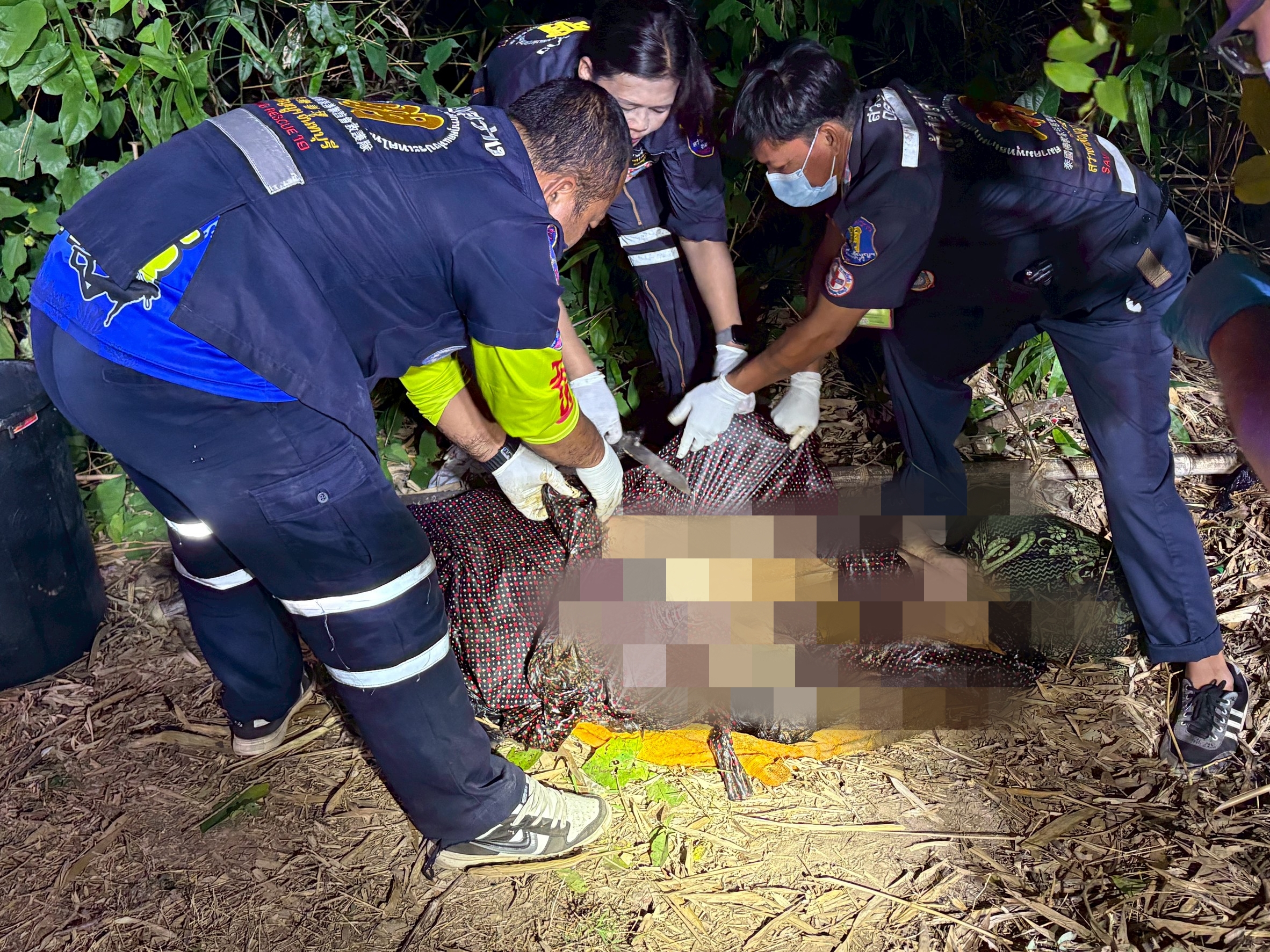 ชาวบ้านออกจากสวน เจอถังสีดำล้มอยู่ริมป่า ได้กลิ่นเหม็นคล้ายซากศพ เปิดดูถึงกับผงะ เป็นศพถูกยัดไว้ในถุงดำ พร้อมผ้าห่ม