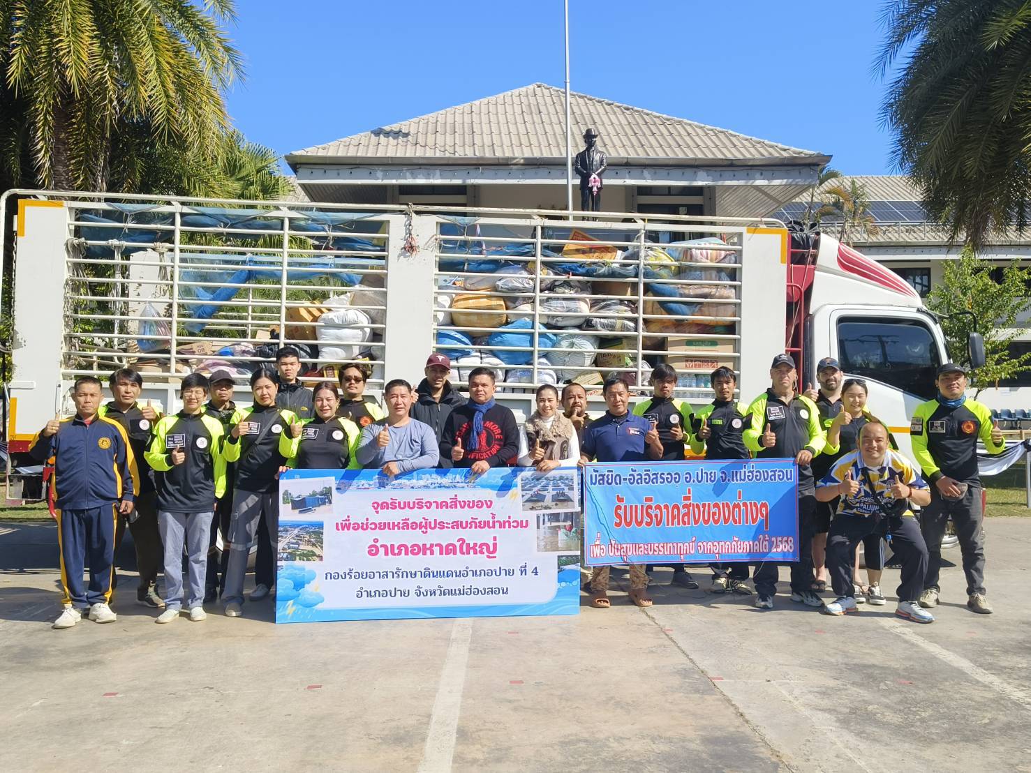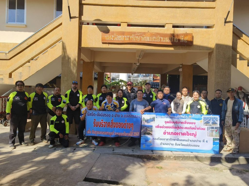 ผู้อำนวยการโรงพยาบาลปางมะผ้า มัสยิดอัล-อิสรออ ชุมชนอิสลาม อ.ปาย สมาคมกู้ภัยปายสามัคคีการกุศล ร้อย อส.อำเภอปาย ที่ 4 ประชาชนทั้งในเขตอำเภอปายและปางมะผ้า ร่วมกันรวบรวมบริจาคสิ่งของเครื่องใช้อุปโภคบริโภค เพื่อช่วยเหลือและส่งมอบให้กับผู้ประสบอุทกภัยในพื้นที่ อ.หาดใหญ่และพื้นที่ใกล้เคียงที่ได้รับผลกระทบในครั้งนี้