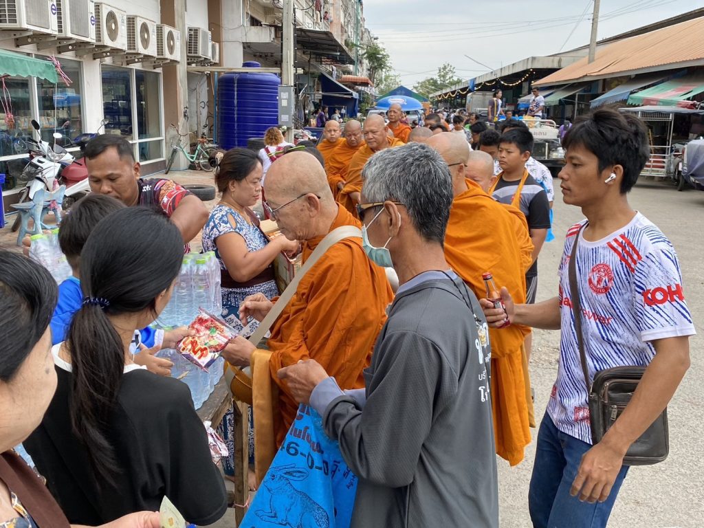 ได้นำ..คณะสงฆ์วัดบางเลนออกบิณฑบาตรข้าวสารอาหารแห้ง ซอยวัดบางเลน และตลาดแพปลาบางเลนธานี