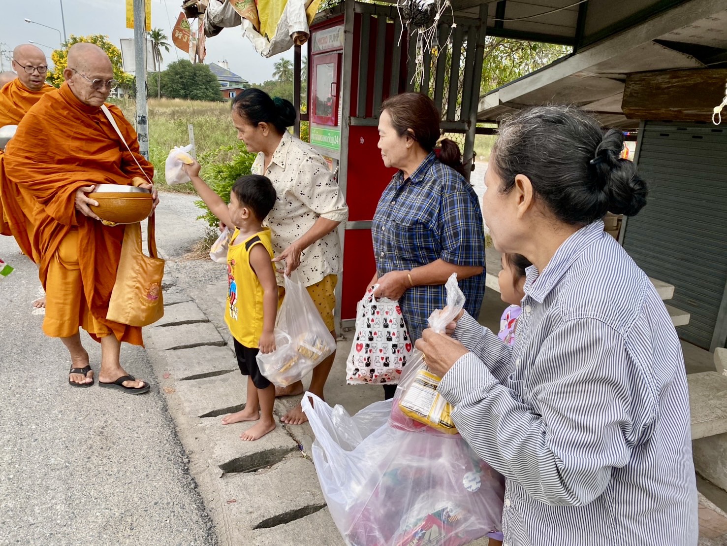 นครปฐม วัดบางเลนออกรับบิณฑบาตร เนื่องในวันชาติ และวันพ่อแห่ชาติ 5ธันวาคม 2568