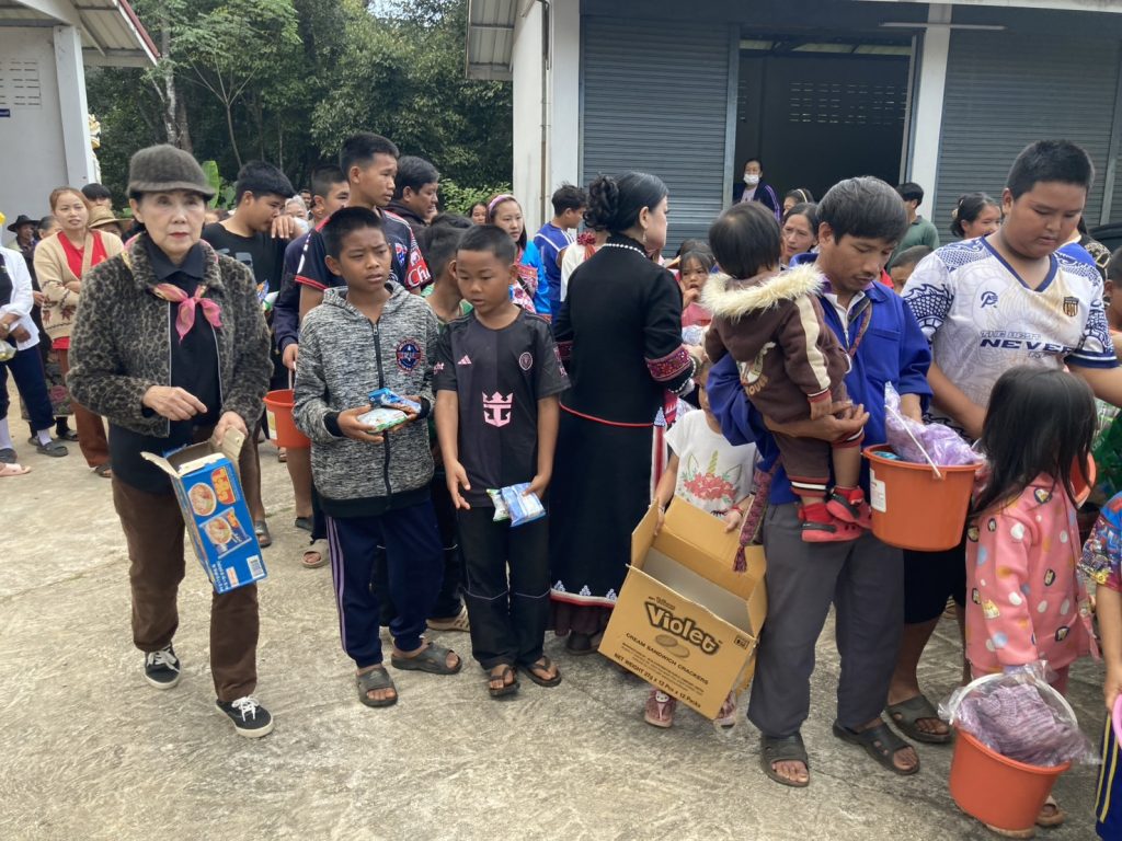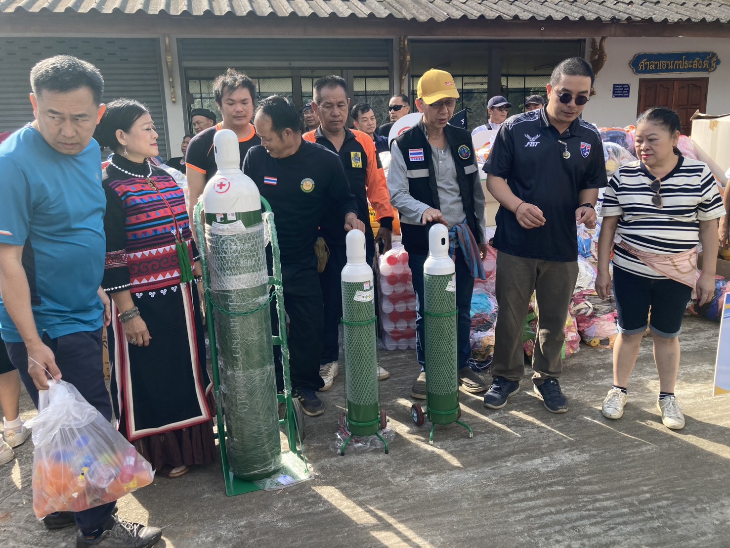 ให้กับชาวบ้านที่ยังขาดแคลนในช่วงฤดูหนาวเพราะบนดอยจะมีอุณหภูมิที่หนาวเย็นกว่าพื้นราบทั่วไปถึง5-8 องศา มีอุปกรณ์รักษาพยาบาลยาสามัญประจำบ้านทั่วไปให้กับประชาชน พร้อมทั้งขนมซองสำหรับเด็กๆ เพื่อเป็นการส่งท้ายปีเก่าต้อนรับปีใหม่ มีประชาชน 4 หย่อมบ้านที่เดินทางมารับโดยทางคณะได้ส่งมอบให้กับผู้ใหญ่บ้านพร้อมคณะกรรมการหมู่บ้านได้ร่วมแจกจ่ายแก่ประชาชนที่ขาดแคลนตามความจำเป็นที่ทางผู้ใหญ่บ้านได้คัดเลือกที่ยากจนมากก่อน ในพื้นที่จะมีประชาชนอยู่อาศัยกันหลายชาติพันธ์ ไทยใหญ่ ลาหู่ พื้นเมือง ที่อาศัยอยู่ร่วมกันตามแนวชายแดน อย่างสงบสุขรักสามัคคีกันตลอดมา จากนั้นได้ร่วมมอบสิ่งของให้กับทหารพรานที่ปฏิบัติการรักษาชายแดนที่บ้านกิ่วฮุง ตำบลแม่อาย อำเภอแม่อาย จังหวัดเชียงใหม่อีกจำนวนหนึ่งเพื่อเป็นการให้กำลังใจพี่น้องทหารหาญ
