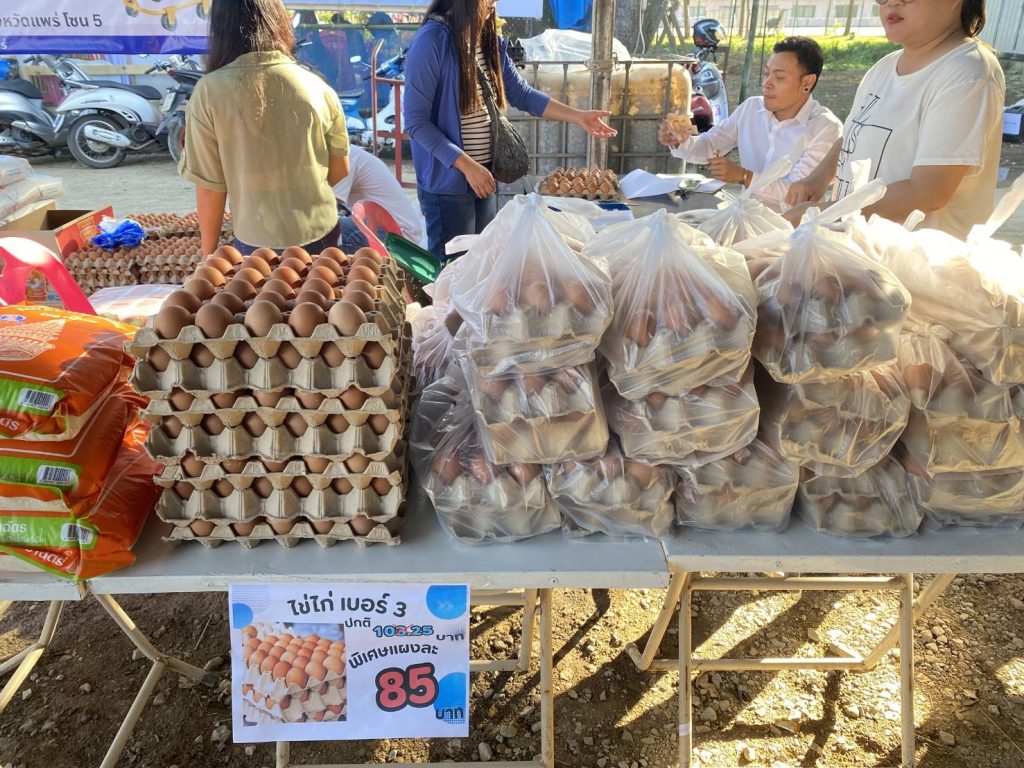 ได้แก่ ไข่ไก่ น้ำมันถั่วเหลือง น้ำมันปาล์ม ข้าวสารหอมมะลิ น้ำตาลทราย ปลากระป๋อง และบะหมี่กึ่งสำเร็จรูป ไปจำหน่ายในราคาถูกกว่าตลาดทั่วไปประมาณ 20 – 40 % มีประชาชนให้ความสนใจเลือกซื้อสินค้า จำนวน 201 คน มูลค่าการจำหน่าย 37,553.- บาท ลดค่าครองชีพให้กับประชาชนผู้บริโภครวมเป็นเงิน 11,725.- บาท โดยยอดรวมการลดค่าครองชีพจากการจัดกิจกรรมในวันที่ 1 , 3 , 5 , 7 ธันวาคม 2568 เป็นจำนวนทั้งสิ้น 38,436.- บาท ทั้งนี้ สำนักงานพาณิชย์จังหวัดแพร่ จะนำสินค้ามาวางจำหน่ายให้กับประชาชนและนักท่องเที่ยวในช่วงเวลา 16.00 – 19.00 น. ของวันที่ 9 ธันวาคม 2568 ซึ่งเป็นครั้งสุดท้ายในงานมหกรรมฯลฯ ซึ่งจัดขึ้นระหว่างวันที่ 1-10 ธันวาคม 2568 ต่อไป.